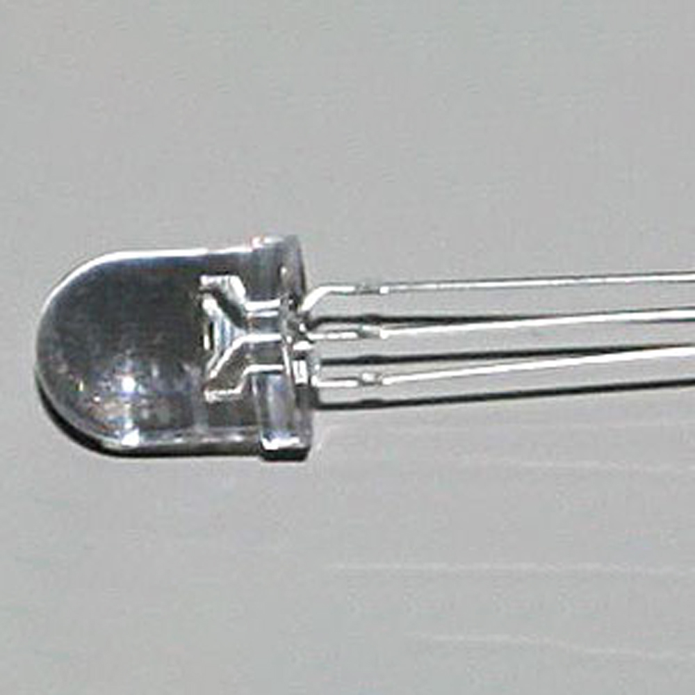 Выводные светодиоды различного диаметра (от 3 до 10 мм) и цвета свечения (в том числе двухцветные и RGB) изготовлены с применением различных материалов первичной оптики. Кристалл помещен в корпус со специальной линзой (прозрачной или окрашенной), которая формирует нужный световой пучок (узкий от 10 до 60° или широкий 120-140°). Данный тип светодиодов применяется в модулях индикации электронных приборов, устройств типа «бегущая строка» и «табло», в специальных устройствах (дорожные знаки и светофоры), световых украшениях или игрушках с подсветкой.