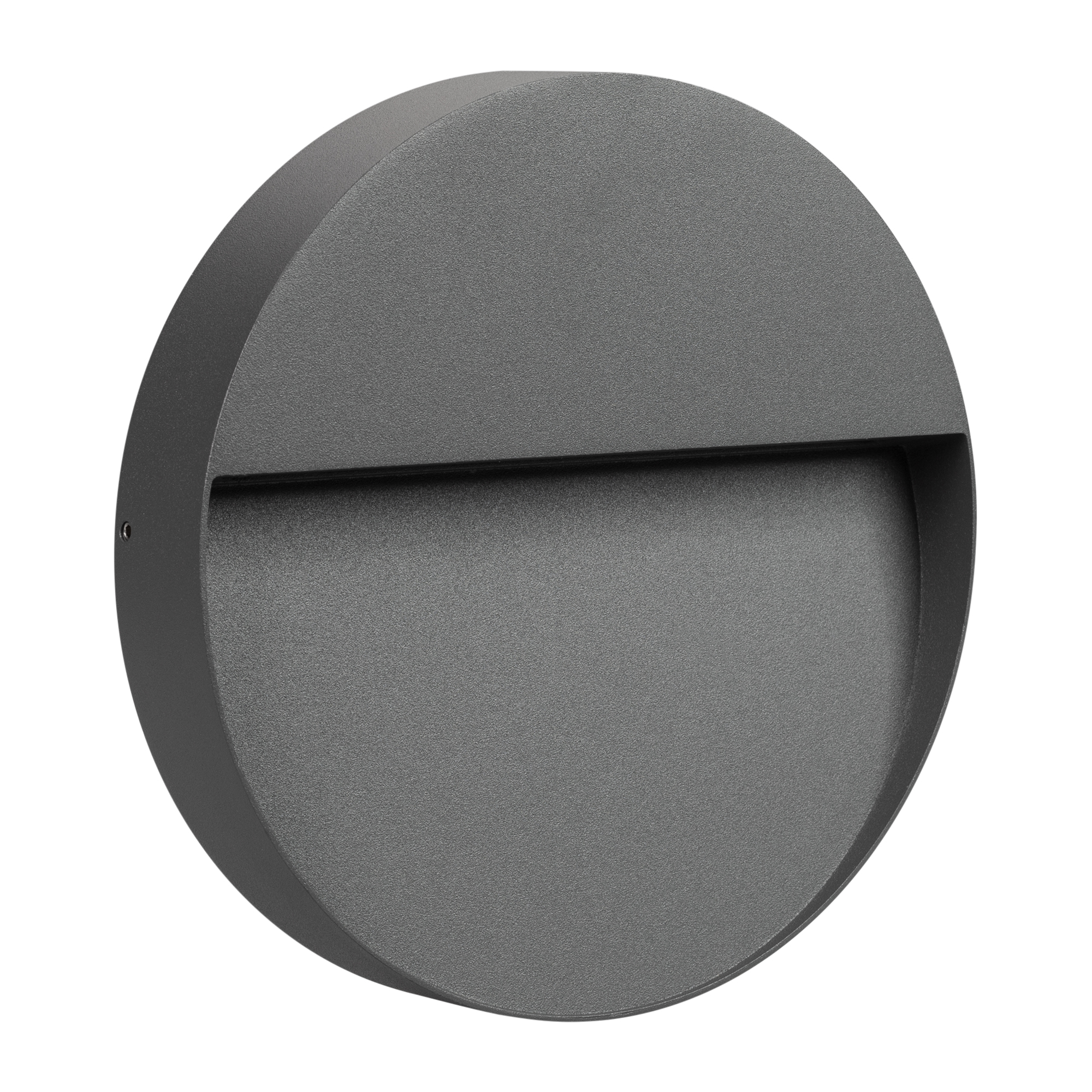Накладной круглый светильник серии TRACE с асимметричным светораспределением и углом излучения 60°, отличительной особенностью которого является небольшая глубина корпуса и компактные размеры, незаменим в тех случаях, когда нет возможности встроить светильник в стену. Корпус изготовлен из алюминия, окрашенного порошковой краской серого цвета и имеет степень пылевлагозащиты IP65, а рассеиватель выполнен из ударопрочного стекла. Светильник, мощностью 8 Вт с теплым белым цветом свечения (3000К) и световым потоком 300 лм обладает высокой цветопередачей CRI(Ra)>80 и станет отличным решением для подсветки ступеней лестничных пролетов и путей перемещения людей как внутри зданий, так и на улице.