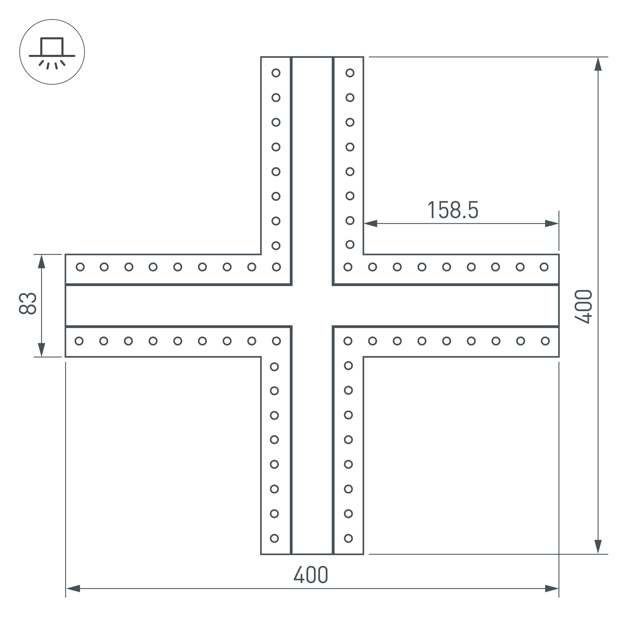 Крестовой угол в сборе для соединения четырех профилей SL-LINIA32-FANTOM под прямыми углами 90° в одной плоскости в комплекте с матовым экраном, соединителями и винтами. Экран образует Х-образную фигуру на плоскости. Применятся при изготовлении светильников сложной геометрии. Длина крестовины 400 мм. Цена за комплект.