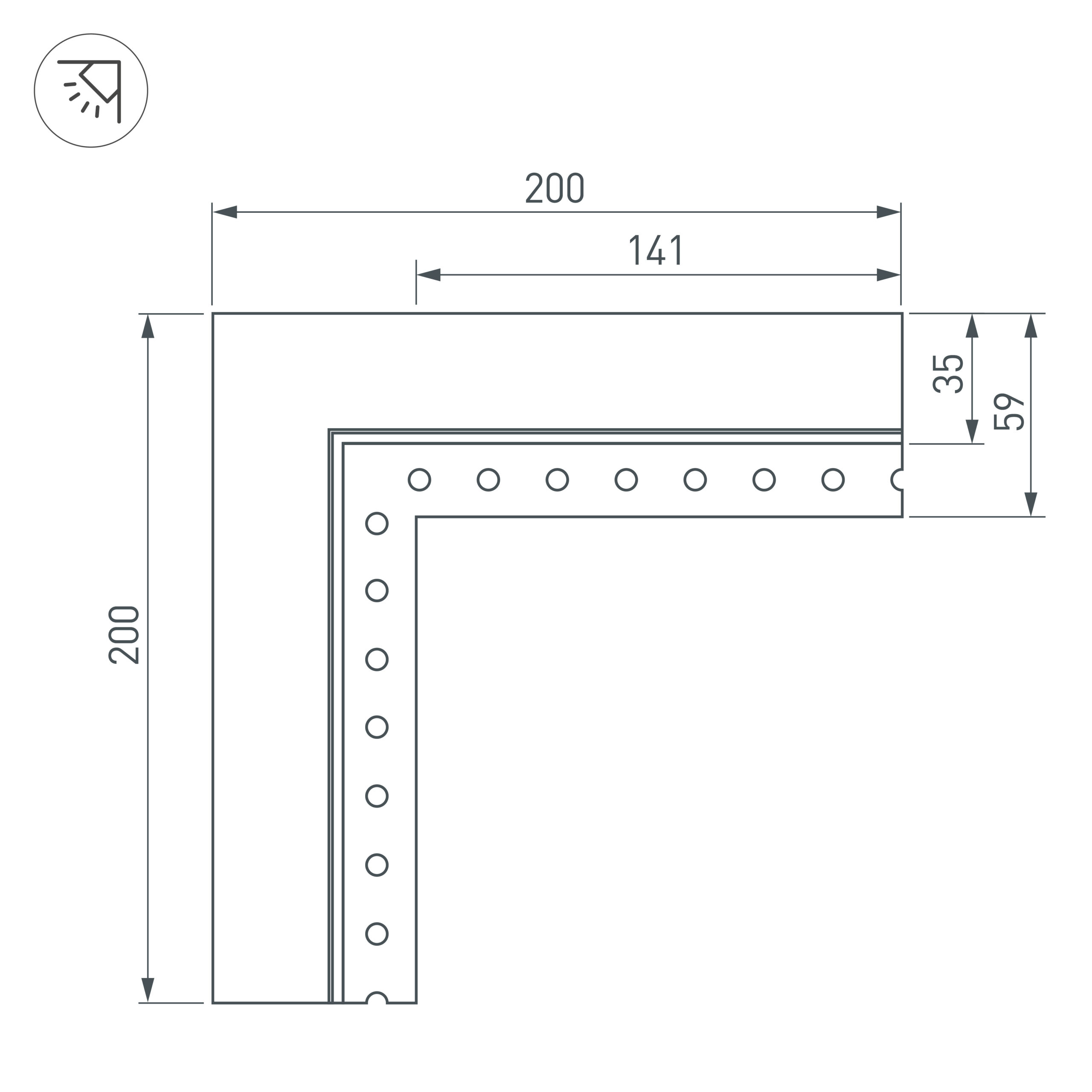 Внутренний прямой угол в сборе со скрытым фланцем под строительную отделку для соединения двух профилей SL-LINIA32-FANTOM-EDGE под прямым углом 90° в разных плоскостях в комплекте с матовым экраном и соединителями. Экран образует линию внутри угла. Применятся при изготовлении светильников сложной геометрии.