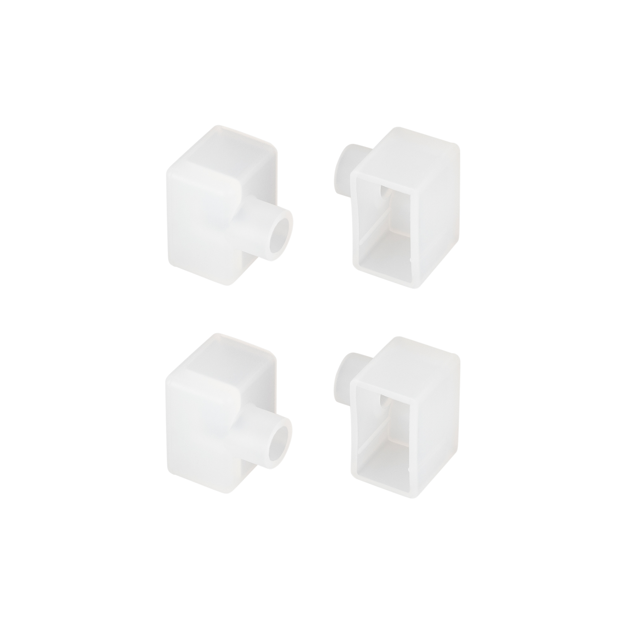 Белые силиконовые заглушки (4 шт.) с отверстием для профиля WPH-FLEX-1018-SIDE. Придают законченный вид светильнику, а также защищают светодиодную ленту от внешних факторов (грязи, пыли и прочего). Отверстие в заглушке позволяет вывести кабель питания светодиодной ленты.