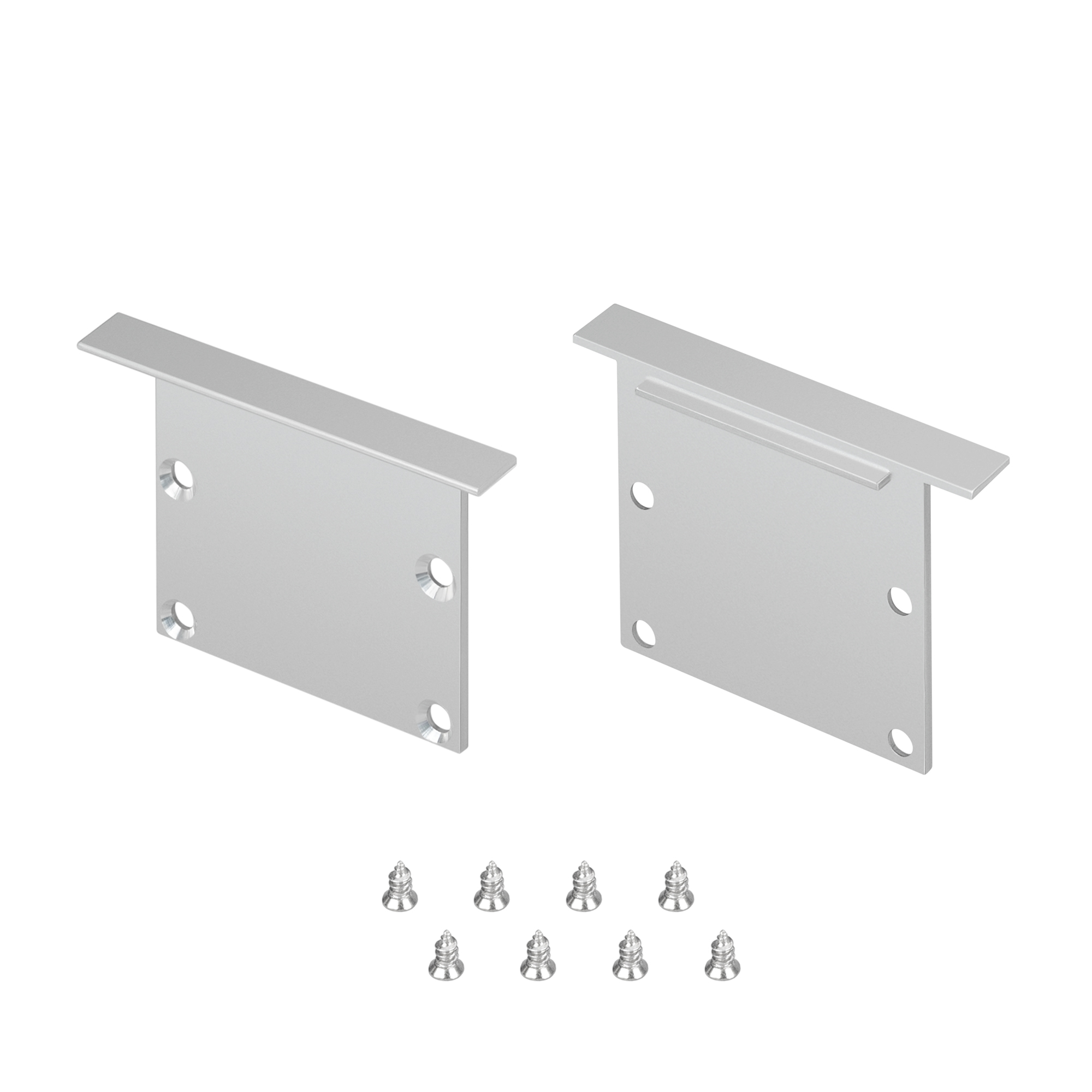 Металлические глухие заглушки (2 шт.) серого цвета для профиля LINIA49-F-S. Придают законченный вид светильнику, а также защищают светодиодную ленту от внешних факторов (грязи, пыли и прочего).