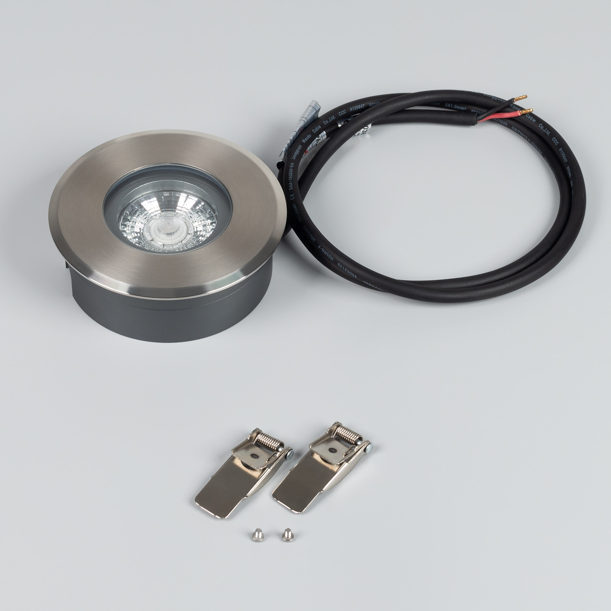 Встраиваемый светодиодный светильник ART-GROUND-SLIM мощностью 6 Вт, теплого цвета свечения (3000К), со световым потоком 400 лм предназначен для ландшафтного освещения парковых и садовых дорожек, придомовых территорий, а также декоративной подсветки стен, лестниц. Узкий угол излучения 35° позволяет создать четкий акцент на подсвечиваемом объекте. Ударопрочный круглый, компактный по высоте корпус из нержавеющей стали и алюминиевого сплава Ø110×38 мм и экран из закаленного стекла толщиной 8 мм надежно защищают оптический блок со светодиодом от внешних воздействий. Степень пылевлагозащиты корпуса на уровне IP67 рассчитана на длительное использование на открытом воздухе, а так же обеспечивает надежную работу в неблагоприятных условиях. Установка в отверстие ДxВ Ø98×35 мм. Напряжение питания 24В (блок питания постоянного напряжения приобретается отдельно). Светильник не поддерживает регулирование светового потока ШИМ.
