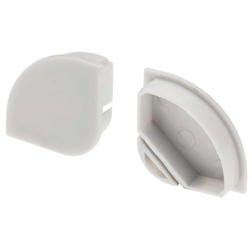 Серая глухая заглушка для профиля KANT-H30 с полукруглым экраном. Придает законченный вид светильнику, а также защищает светодиодную ленту от внешних факторов (грязи, пыли и прочего).