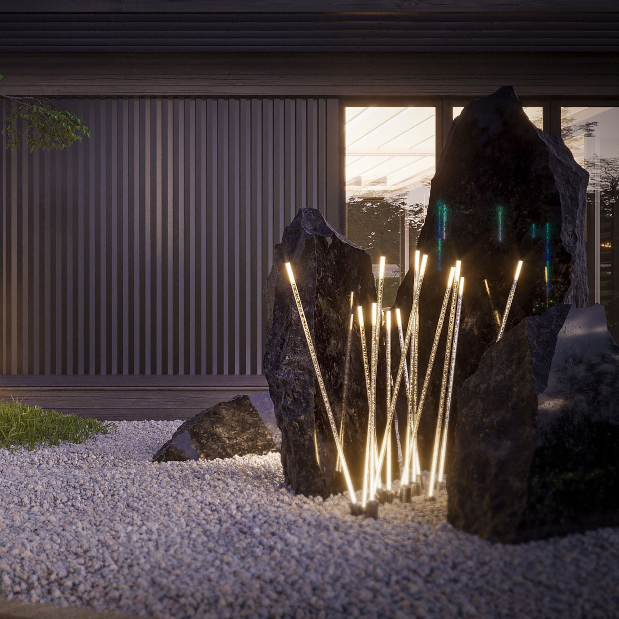 Декоративный ландшафтный светильник серии ALT-CHAMPAGNE с теплым белым цветом свечения (3000 К) предназначен для применения в ландшафтном и архитектурном освещении. За счет широкого угла излучения 180° и светового потока 40 лм светильник идеально подойдет для подсветки кустарников, клумб и других декоративных элементов. Мощность модели составляет 3,5 Вт. Корпус светильника выполнен из высококачественного алюминия, покрытого полиэфирной темно-серой порошковой краской, устойчивой к воздействию агрессивных сред и УФ-излучению. Высокая степень защиты от проникновения пыли и влаги (IP65) позволяет эксплуатировать светильник на улице в различных погодных условиях. Световод помещен в тонкую прозрачную трубку высотой 1200 мм из ударопрочного поликарбоната, обеспечивающего высокую степень защиты от внешних воздействий. Уникальный световой эффект достигается благодаря преломлению светового луча в оптической части светильника.