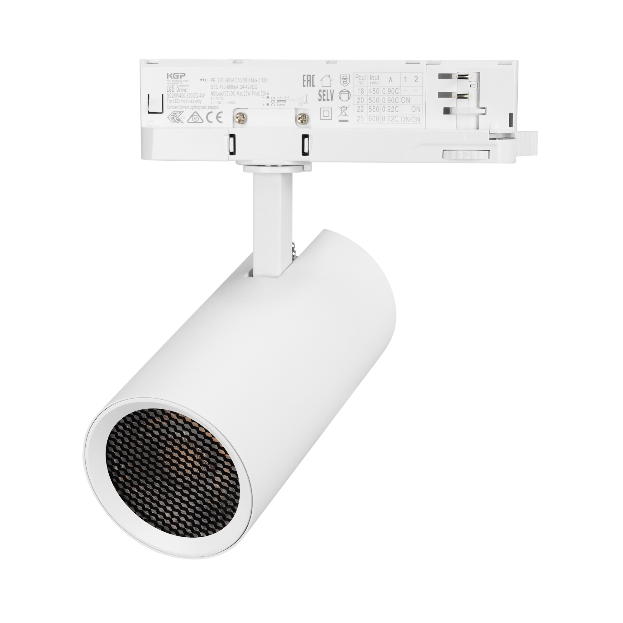 Одинарный трековый светильник GERA мощностью 20 Вт с теплым цветом свечения (3000 К) и индексом цветопередачи CRI>90 для создания локального направленного освещения в квартирах, офисах, музеях, магазинах и др. помещениях. Светильник с узким углом рассеивания 36 градусов и световым потоком 2000 лм обеспечивает качественное освещение и высокую световую отдачу, оснащен решеткой HONEYCOMB в комплекте. Стильный лаконичный корпус из алюминия окрашен в белый цвет высококачественной порошковой краской. Корпус светильника поворачивается вокруг своей оси, что позволяет быстро менять направление светового луча. Светильник легко устанавливается в трехфазный трек серии LGD и подключается к сети переменного тока 230 В с помощью встроенного драйвера. Дополнительные аксессуары приобретаются отдельно.