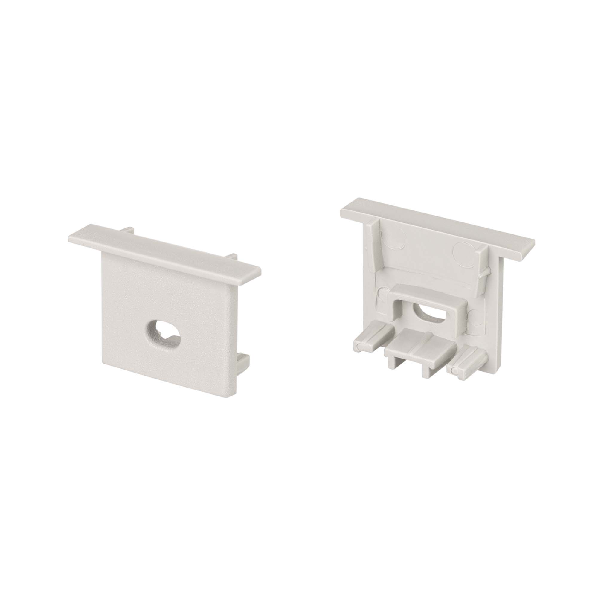 Заглушки (2 шт.) с отверстием для профиля SL-COMFORT-1716-F. Придают законченный вид светильнику, а также защищают светодиодную ленту от внешних факторов (грязи, пыли и прочего). Отверстие в заглушке позволяет вывести кабель питания светодиодной ленты.