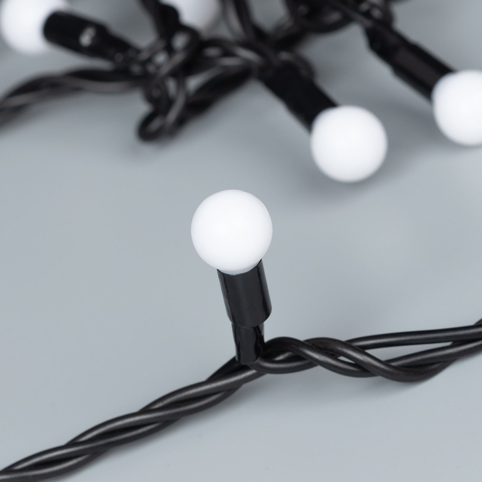 Универсальная светодиодная гирлянда “ШАРИКИ” серии Classic, предназначенная для декорирования и создания праздничного настроения как внутри помещений, так и снаружи (степень пылевлагозащиты IP65 позволяет размещать гирлянду на улице под навесом). Имея длину 10000 мм, она может использоваться для оформления средних и больших площадей. Универсальные соединительные разъемы позволяют наращивать длину до 200 м без использования дополнительных аксессуаров. Выпуклая молочно-белая линза размером 13 мм и эффект непрерывного свечения обеспечивают мягкое, равномерное освещение, выделяя украшаемые объекты. Синий свет помогает создать необходимую атмосферу для декоративного объекта. Провод изготовлен из ПВХ и окрашен в чёрный цвет. Аксессуары для подключения приобретаются отдельно.