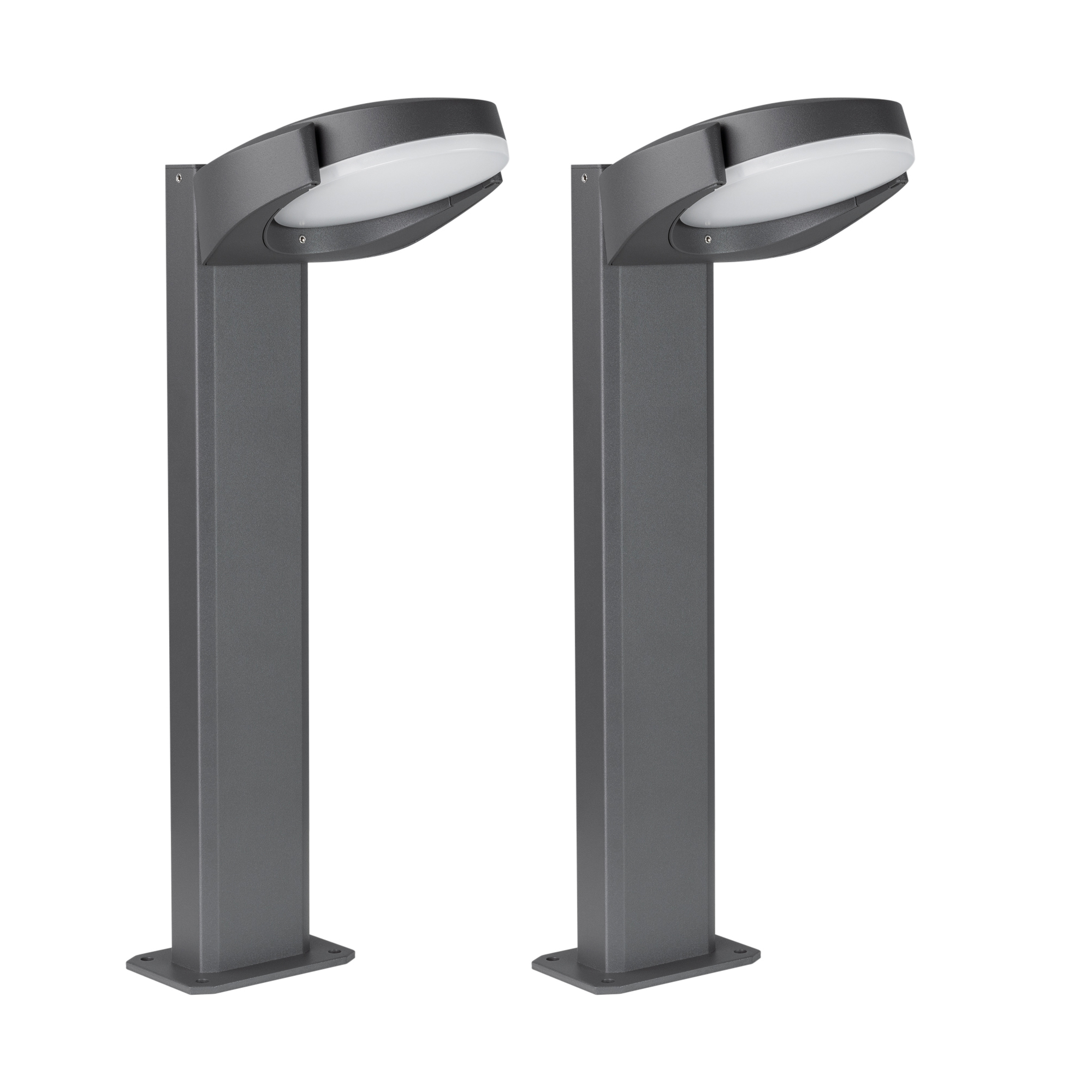 КОМПЛЕКТ ИЗ ДВУХ СВЕТИЛЬНИКОВ. 500мм уличный светодиодный светильник с поворотной оптической частью (угол поворота 40°) для подсветки дорожек. Цвет ТЕПЛЫЙ БЕЛЫЙ 3000К, 6Вт (615лм). Влагозащищенный корпус IP54 – серый алюминий, экран из поликарбоната. Питание 230В, мощность 6Вт. Размеры ДхШхВ 248х151х500 мм.