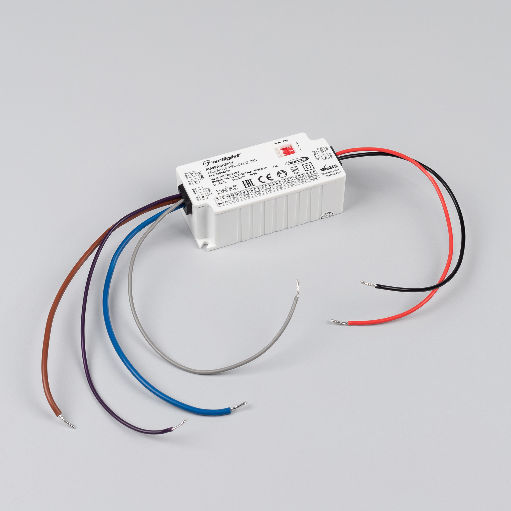 Диммируемый источник тока по протоколу DALI2 и Push-Dim с гальванической развязкой позволяет изменять яркость свечения. Высокая стабильность выходного тока и низкий коэффициент пульсаций обеспечивают свечение без эффекта мерцания. Благодаря компактным размерам подходит для установки внутрь небольших светильников. Наличие DIP-переключателя на корпусе позволяет задать необходимые выходные параметры для нагрузки.