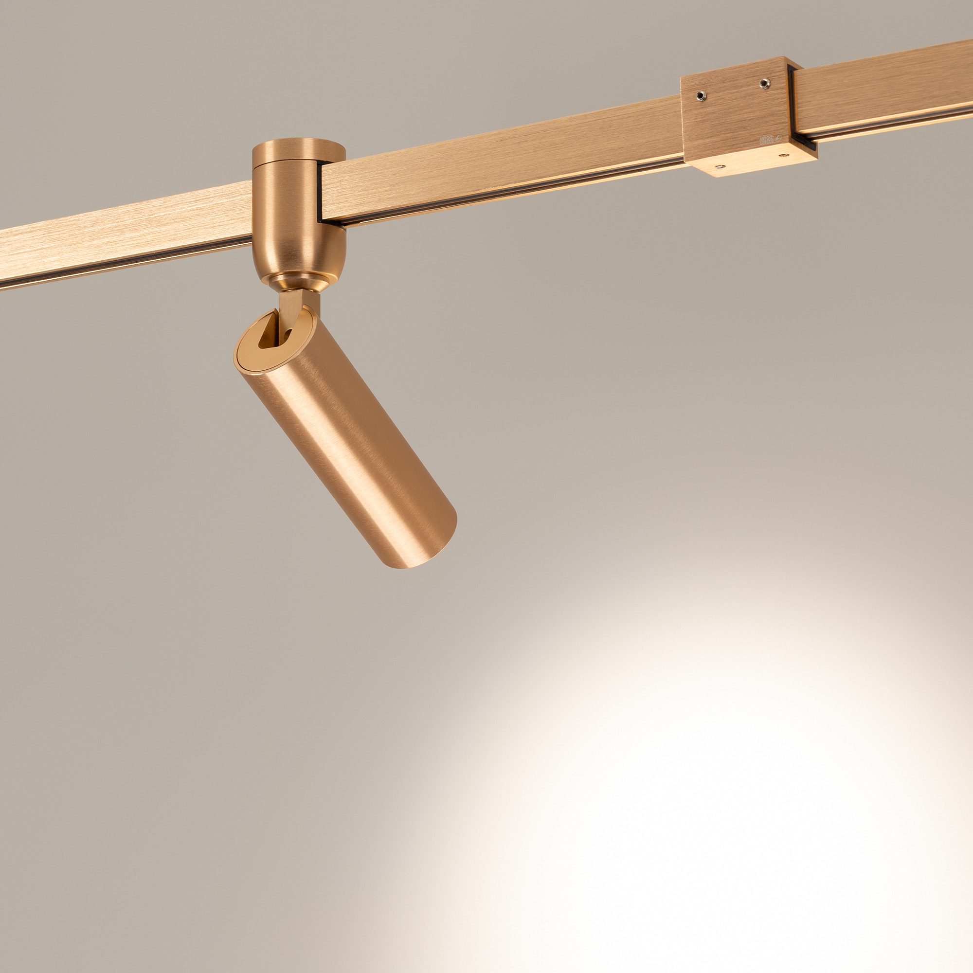 Светильник ART-APRIORI-SPOT-TURN-R38-8W Day4000 (GD, 36 deg, 48V) мощностью 8 Вт для треков APRIORI шириной 17 мм. Дневной цвет свечения (4000 К), световой поток 580 лм, световая эффективность 73 лм/Вт и высокий индекс цветопередачи CRI>92 обеспечивают качественное, равномерное освещение и максимальную различимость цветовых оттенков. Фигурный корпус из алюминия, анодированный в цвет светлое золото, гармонично вписывается в различные типы интерьеров. Светильник легко монтируется на шинопровод с помощью специального механизма, а поворотное исполнение позволяет направить световой поток в нужное место. Возможность вертикальной установки светильника: оптикой вверх или вниз позволяет реализовать множество свето-дизайнерских задач. Узкий угол излучения 36° подойдет для организации направленного освещения. Имеет защиту от пыли IP20 для применения внутри помещений, где нет контакта с водой или другими жидкостями. Минимальный коэффициент пульсации (менее 1%) гарантирует зрительный комфорт без мерцания. Идеальное решение для создания акцентного освещения в жилых, офисных, коммерческих, и др. помещениях с высокими требованиями к качеству света. Управление яркостью осуществляется с помощью диммера по ШИМ (PWM) или возможно не адресное управление при использовании драйвера Dali, 0-10V или TRIAC. Драйвер для подключения 48В поставляется отдельно.
