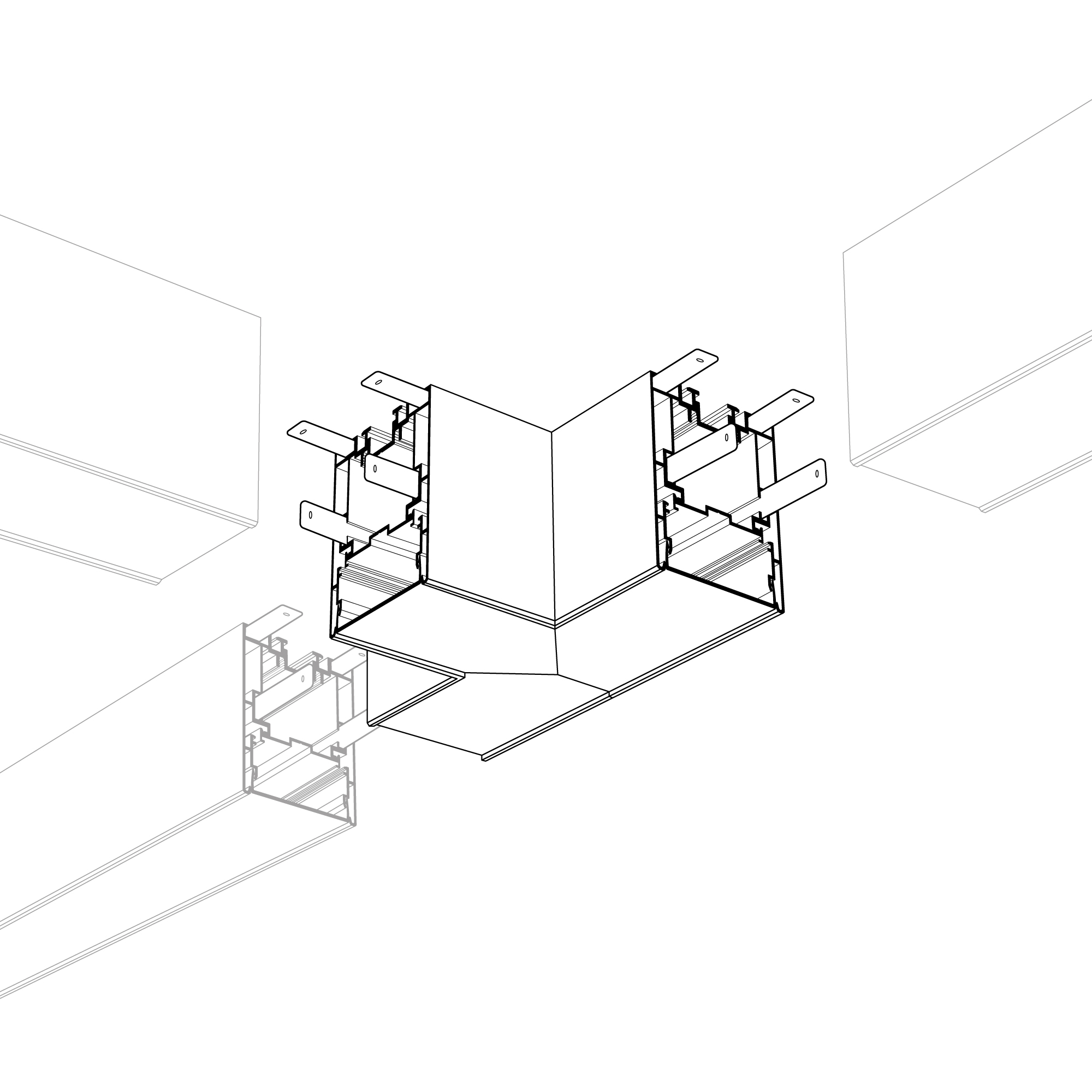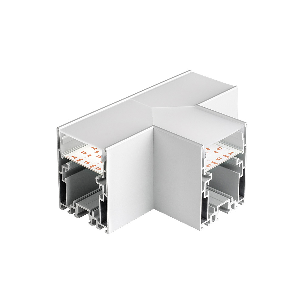 Т-образный угол в сборе для соединения трех профилей S2-LINE-5470 под прямыми углами 90° в одной плоскости в комплекте с матовым экраном, площадкой для ленты и соединителями. Экран образует Т-образную фигуру на плоскости. Применятся при изготовлении светильников сложной геометрии.