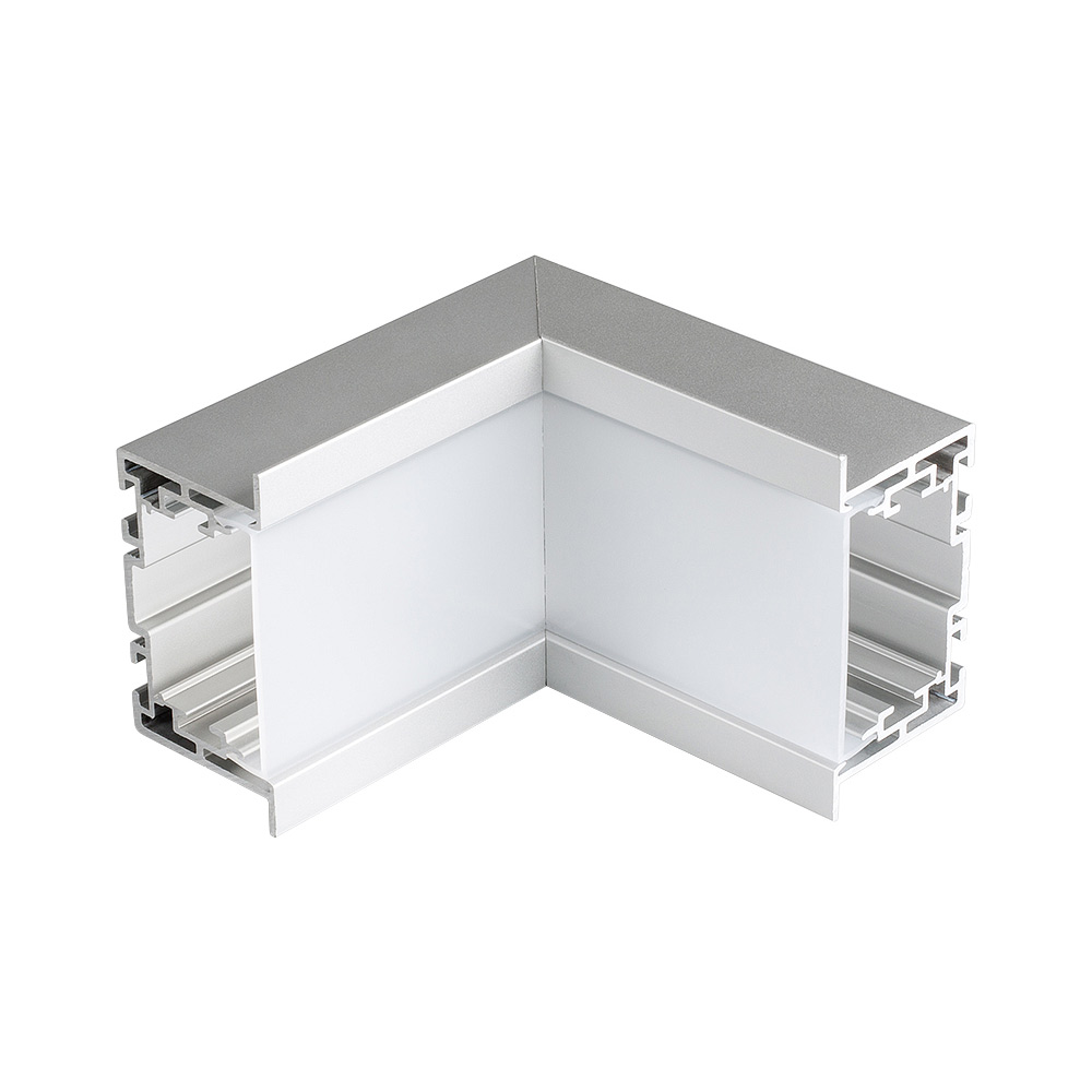 Внутренний прямой угол в сборе для соединения двух профилей S2-LINIA69-F под прямым углом 90° в разных плоскостях в комплекте с матовым экраном и соединителями. Экран образует линию внутри угла. Применятся при изготовлении светильников сложной геометрии.