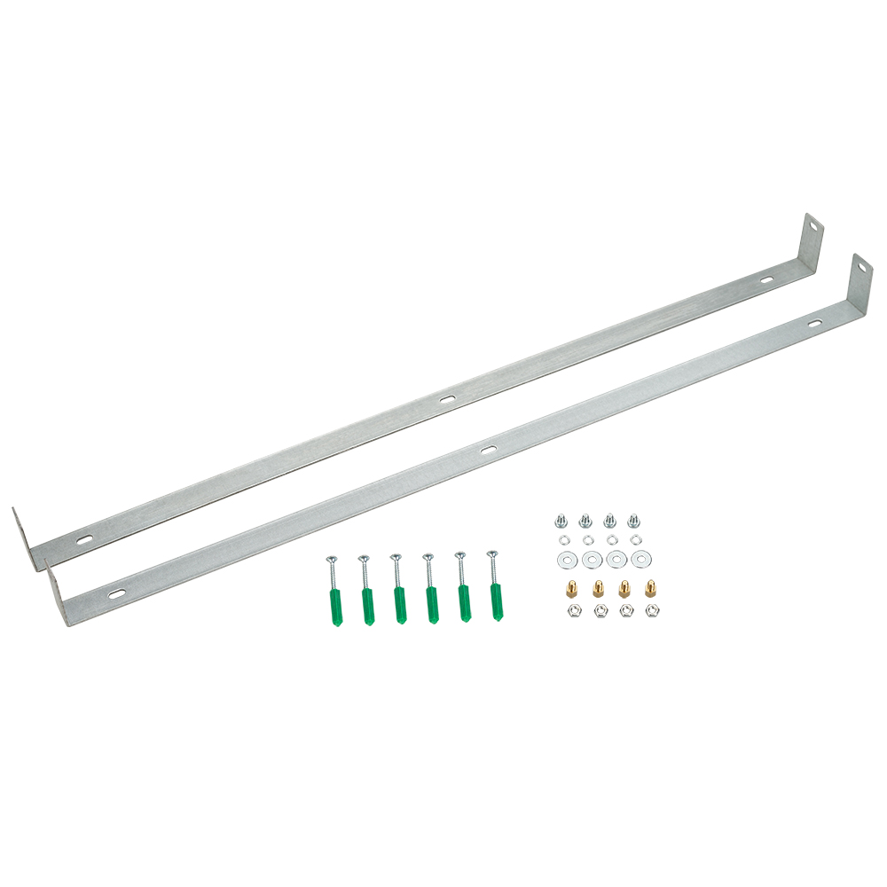 Скобы для накладного монтажа панелей серии DL-B600×600. В комплекте: 2 скобы, 6 дюбелей, 6 шурупов, 4 винта, 4 гайки, 4 гровер-шайбы, 4 стойки резьбовых.