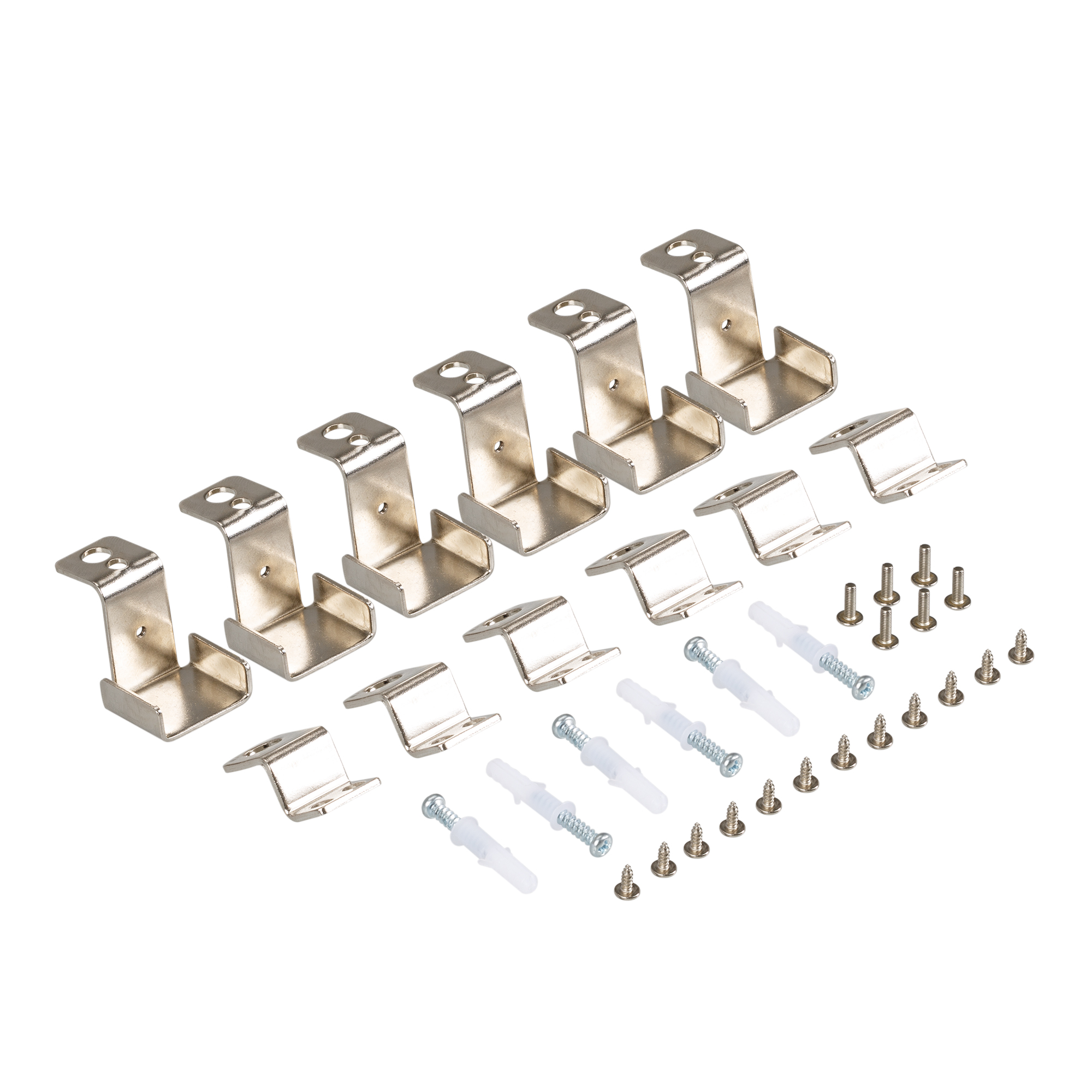 Набор для накладной установки панелей 300×1200, 600×1200. Подходит для крепления к потолку и стенам. В комплекте 6 держателей и 6 винтов.