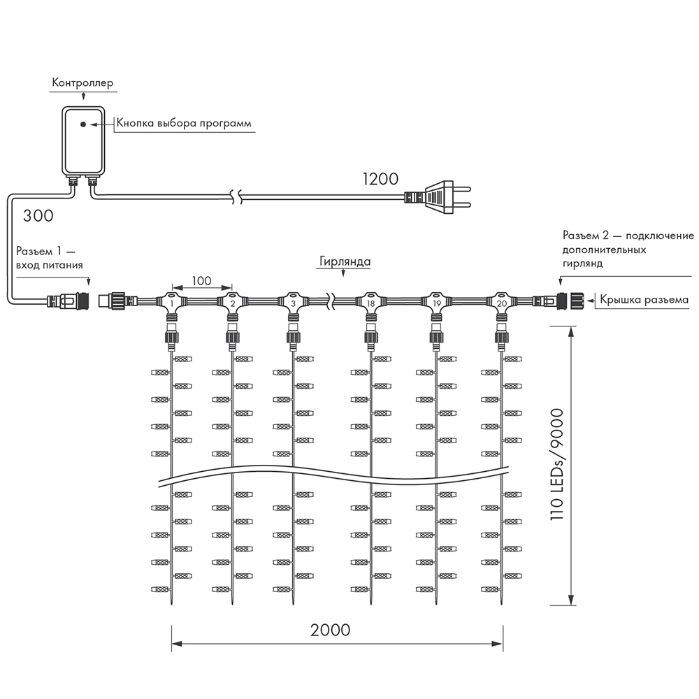 Универсальная светодиодная гирлянда “ЗАНАВЕС” серии Classic отлично подходит для украшения и создания праздничной атмосферы как внутри помещений, так и снаружи (степень пылевлагозащиты IP65 позволяет размещать гирлянду на улице под навесом). Имея размеры 2000 x 9000 мм, она может использоваться для оформления средних и больших площадей. Универсальные соединительные разъемы позволяют соединять до 3 гирлянд без использования дополнительных аксессуаров. Прозрачная вогнутая линза , 8 динамических эффектов и эффект непрерывного свечения обеспечивают яркое, равномерное освещение, выделяя украшаемые объекты. Тёплый белый свет помогает создать необходимую атмосферу для декоративного объекта. Провод прозрачный изготовлен из ПВХ. Аксессуар для подключения и выбора режима свечения в комплекте.