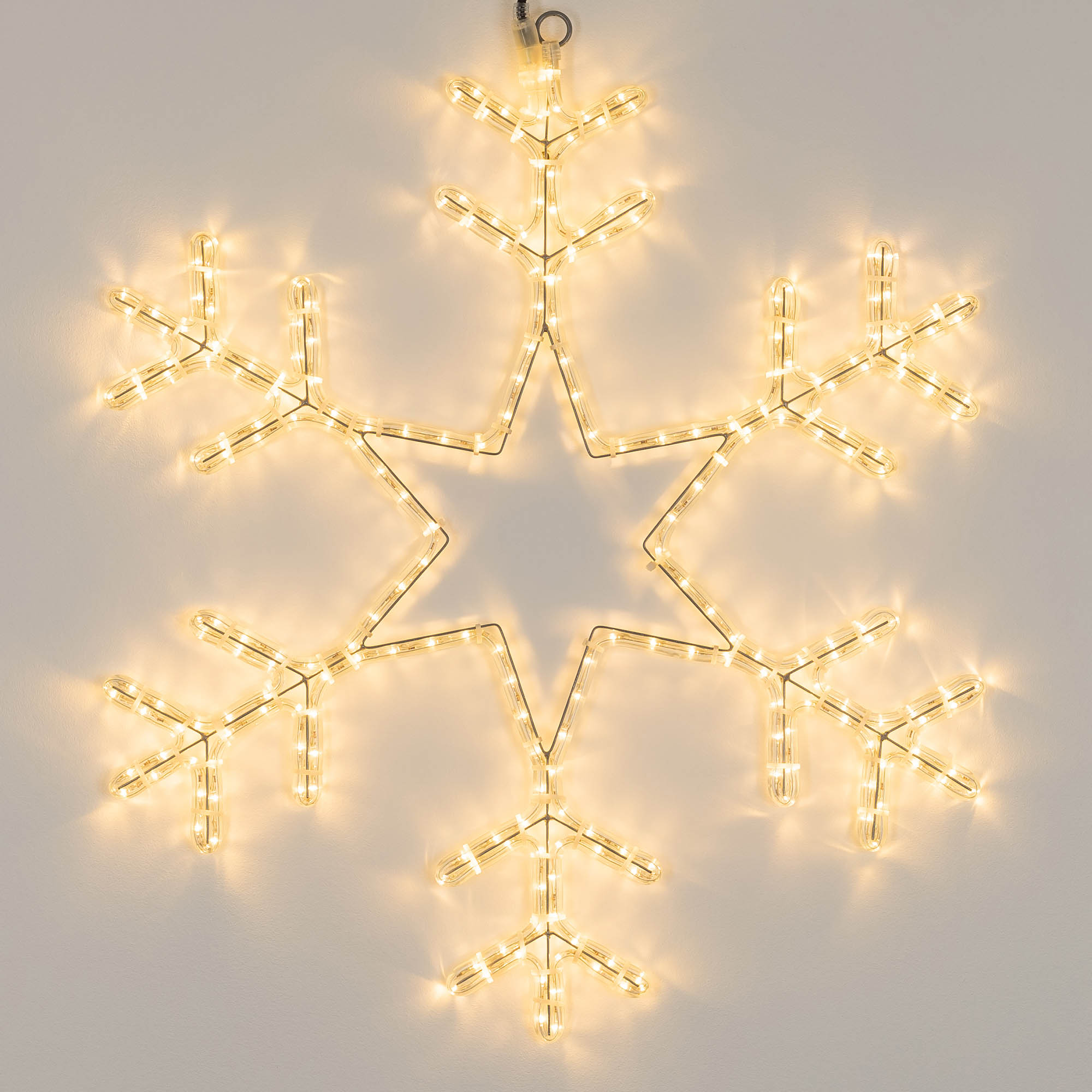 Светодиодная фигура СНЕЖИНКА отлично подходит для украшения и создания праздничной атмосферы как внутри помещений, так и снаружи (степень пылевлагозащиты IP65 позволяет размещать гирлянду на улице под навесом). Размер фигуры 750×750 мм. Тёплый белый свет и постоянное свечение помогают создать сказочную атмосферу в выбранной локации. Фигура укомплектована проводом питания для подключения к сети 230 В (без вилки питания).