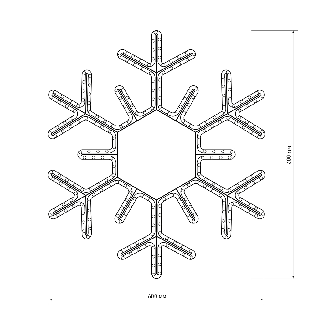 Светодиодная фигура СНЕЖИНКА отлично подходит для украшения и создания праздничной атмосферы как внутри помещений, так и снаружи (степень пылевлагозащиты IP65 позволяет размещать гирлянду на улице под навесом). Размер фигуры 600×600 мм. Холодный белый свет и постоянное свечение помогают создать сказочную атмосферу в выбранной локации. Фигура укомплектована проводом питания для подключения к сети 230 В (без вилки питания).
