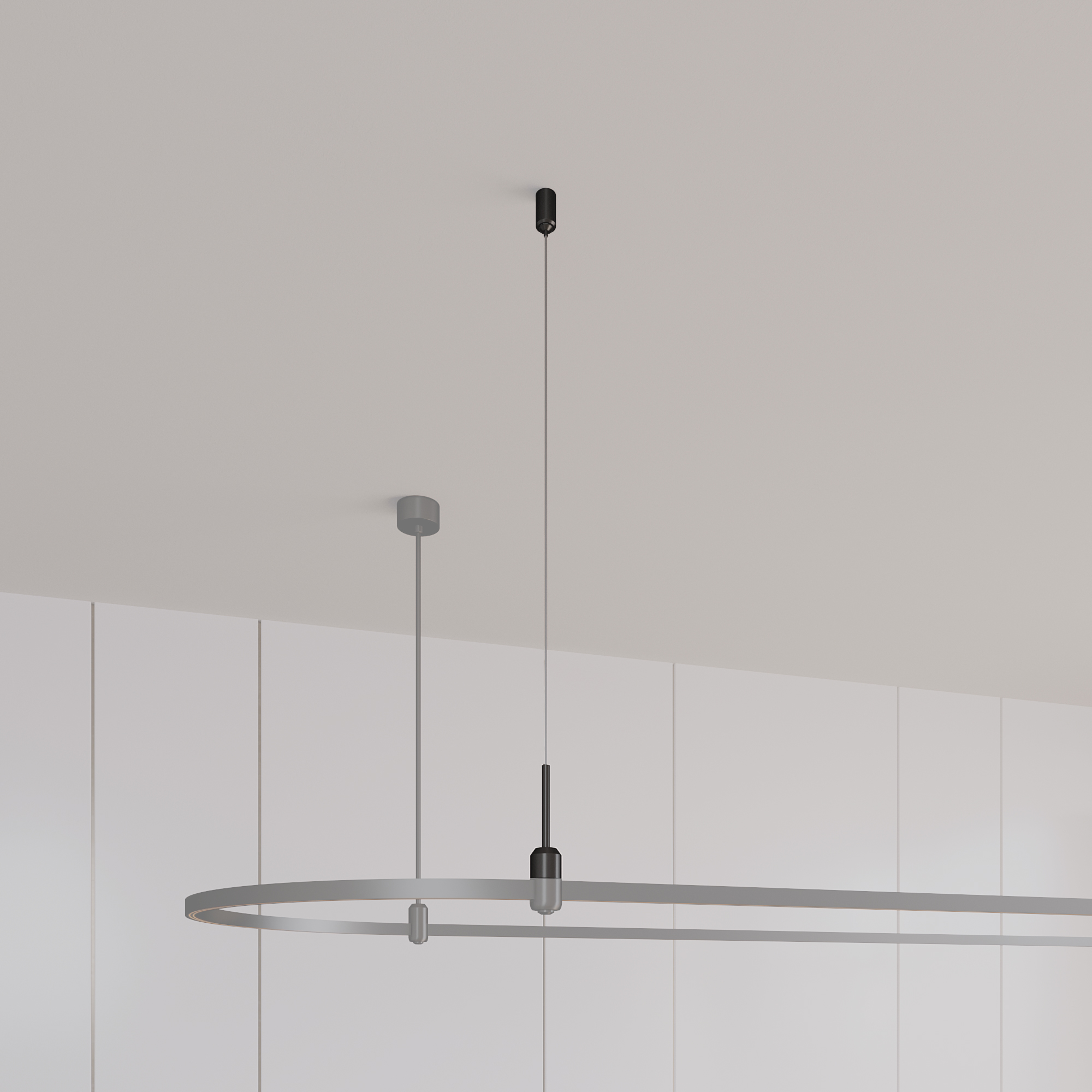 Подвес гибкий HANG-A с регулируемым тросом длиной 1500 мм используется для подвесного монтажа треков системы APRIORI к потолку или другой поверхности. Размер: Ø20 х 1500 х Ø38 мм. Подвес имеет тип нижнего крепления A. Совместим с держателями трека тип А. Не проводит электричество. Изготавливается из алюминия, окрашенного в черный цвет.