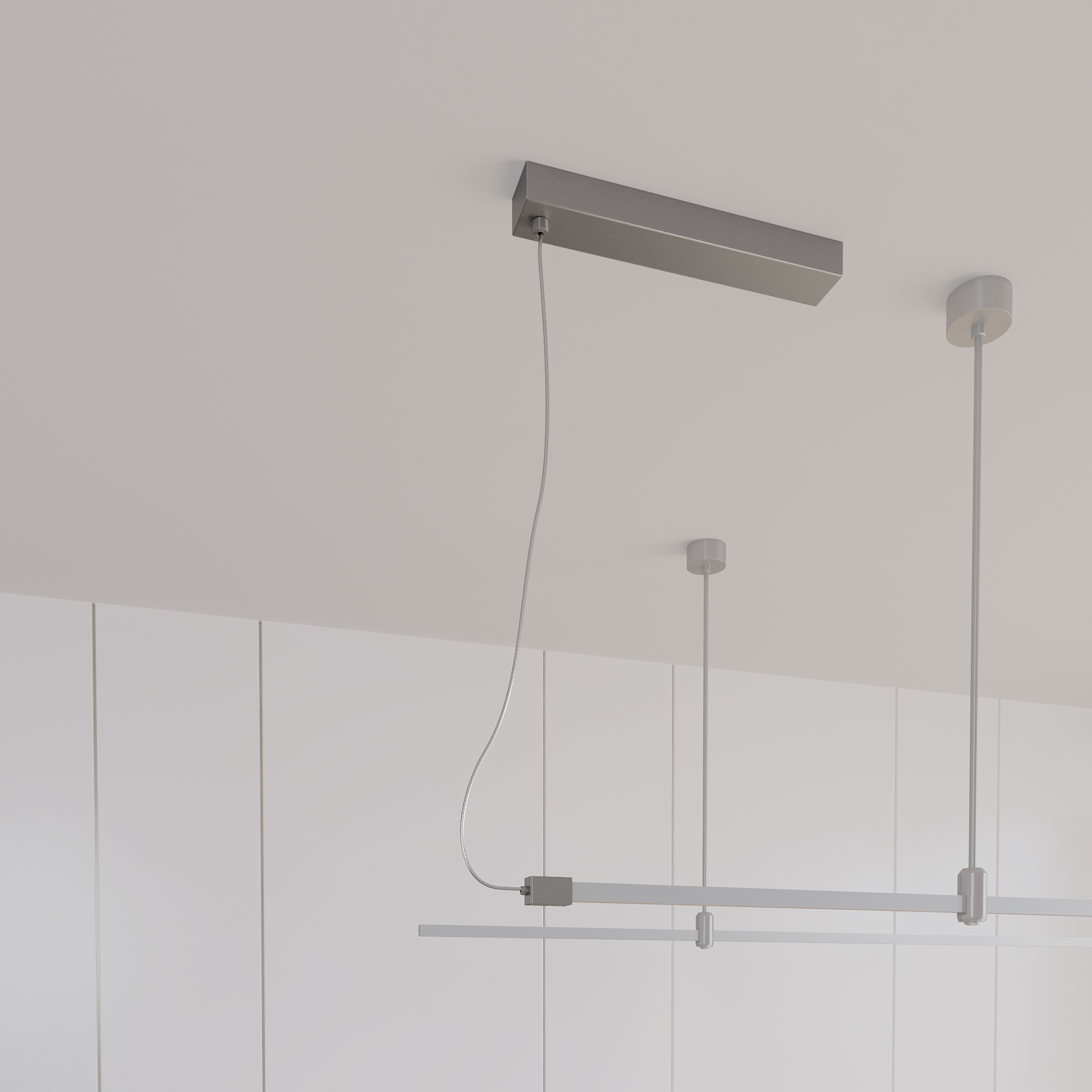 Потолочный короб позволяет спрятать источник питания DC48В, который используется для питания системы APRIORI. Короб имеет боковой подвод питания к треку. Не несет весовую нагрузку. Изготавливается из алюминия, гальванизированного в цвет титан. Размер ДxШxВ: 400x60x40мм. Внутренний размер под БП ДxШxВ: 350*50*30 мм. Длина кабеля 1500 мм.