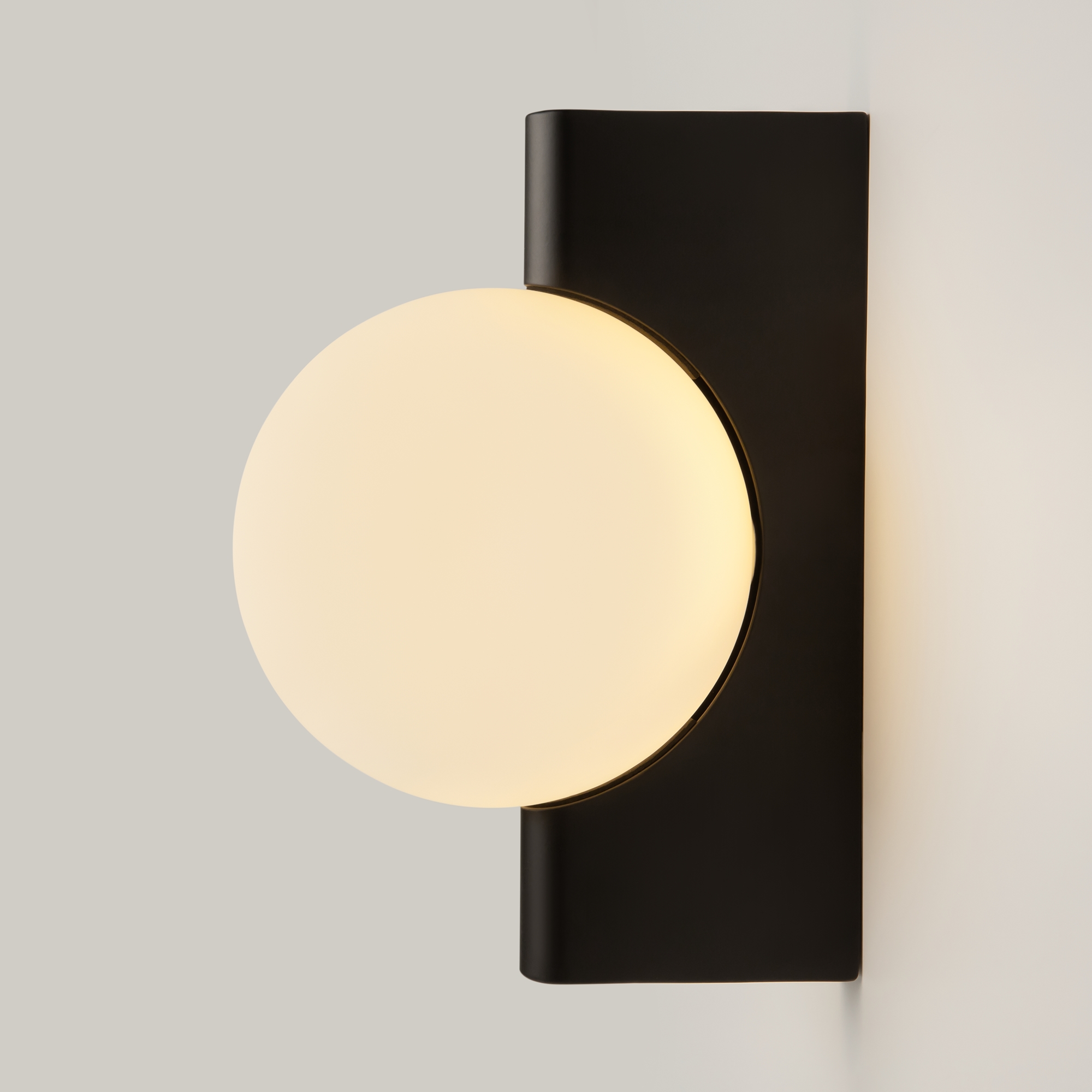 Арматура из металла. оттенки – матовый черный. латунь. хром. Плафон-сфера – стекло. цвет – белый. Скрытое крепление. Оригинальная геометрия в дизайне. Чистый теневой рисунок