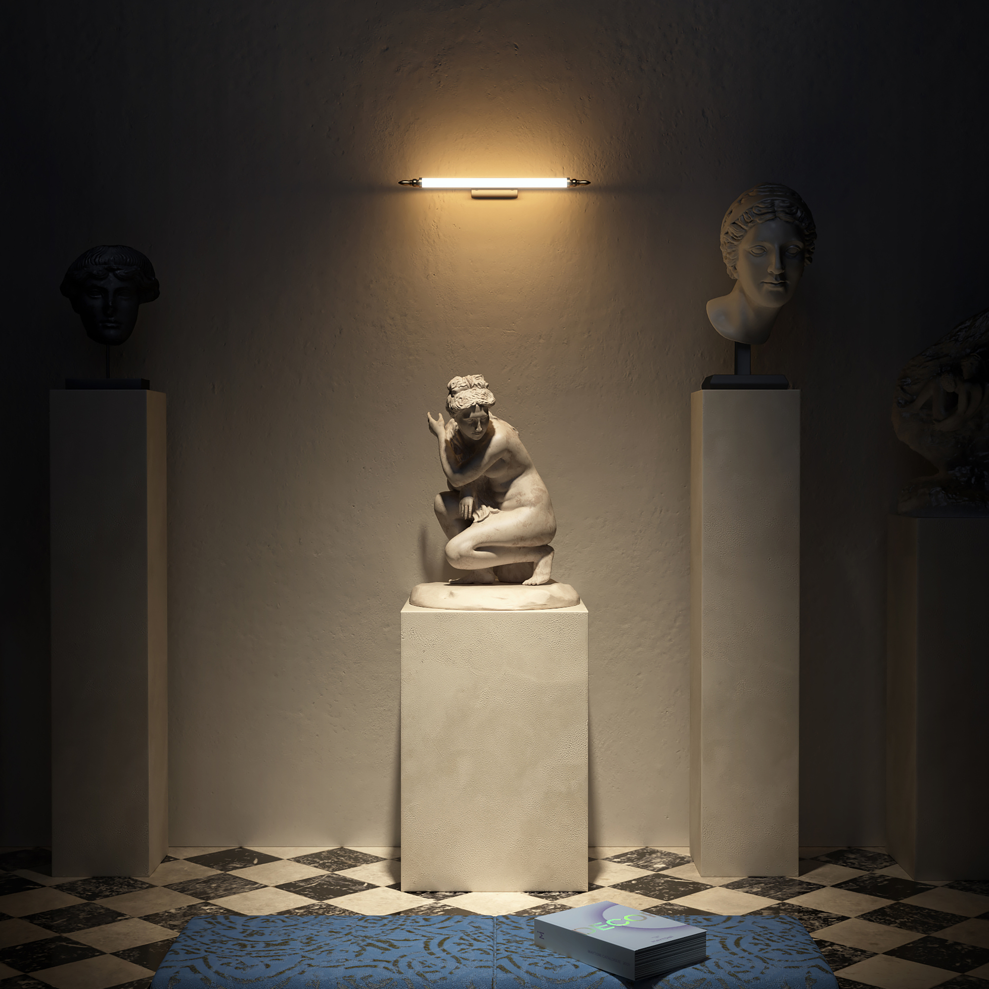Металлический корпус окрашен в трендовый медный цвет. LED-источники скрыты под прочным пластиком, что обеспечивает мягкий, комфортный для зрения световой поток. Дизайн модели воссоздает актуальный для середины прошлого столетия образ светящейся трубки. Материал плафона – стекло.