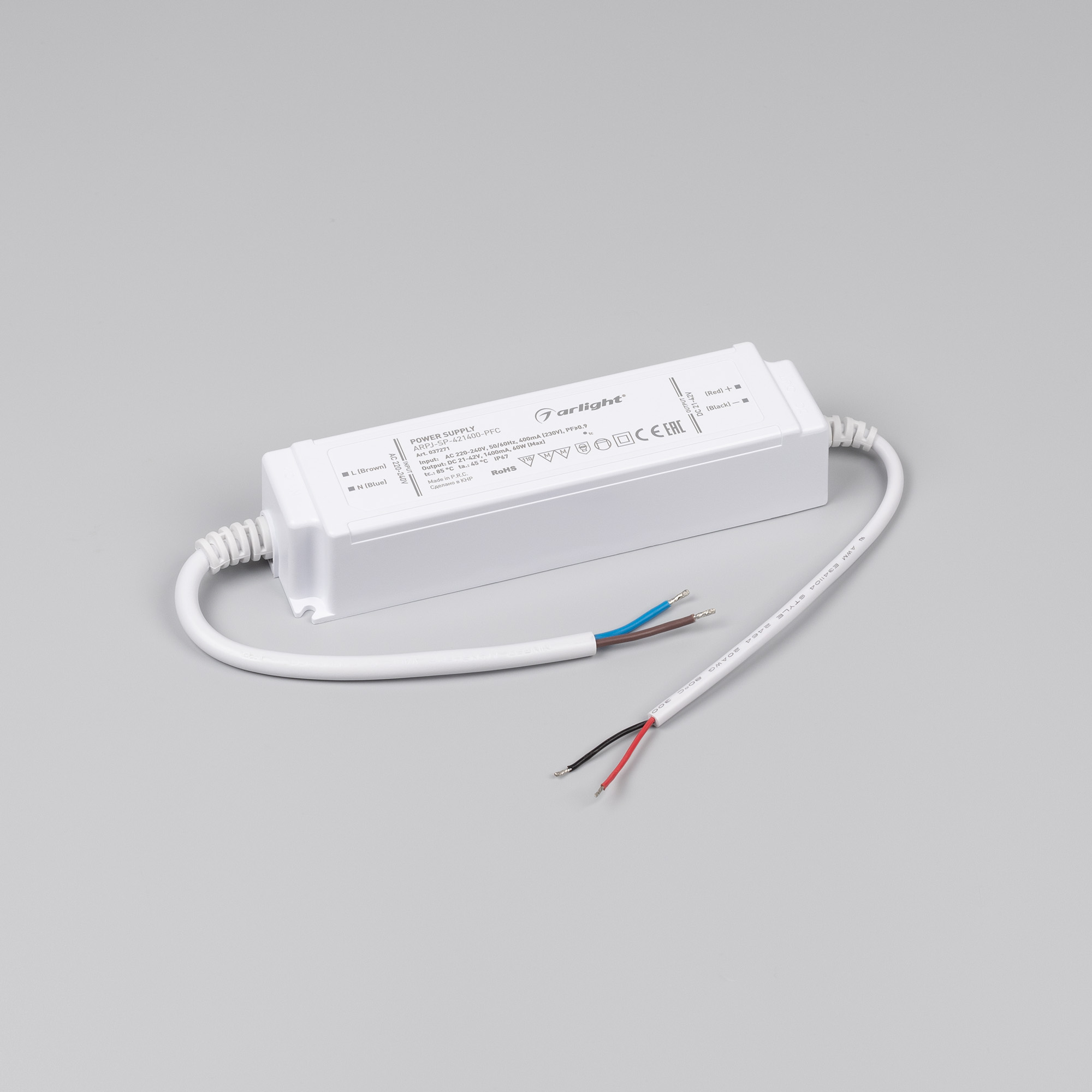 Источник напряжения с гальванической развязкой применяется для питания различных типов светодиодных изделий. Пластиковый корпус обладает небольшим весом и габаритами, а высокая степень влагозащиты IP67 позволяет использовать устройство как внутри, так и вне помещений, с соблюдением правил и требований к установке. Встроенный корректор коэффициента мощности позволяет снизить реактивную мощность источника питания, что положительным образом отражается на количестве потребляемой энергии. Высокая эффективность и расширенная гарантия 5 лет – основные преимущества линейки ARPJ-SP.