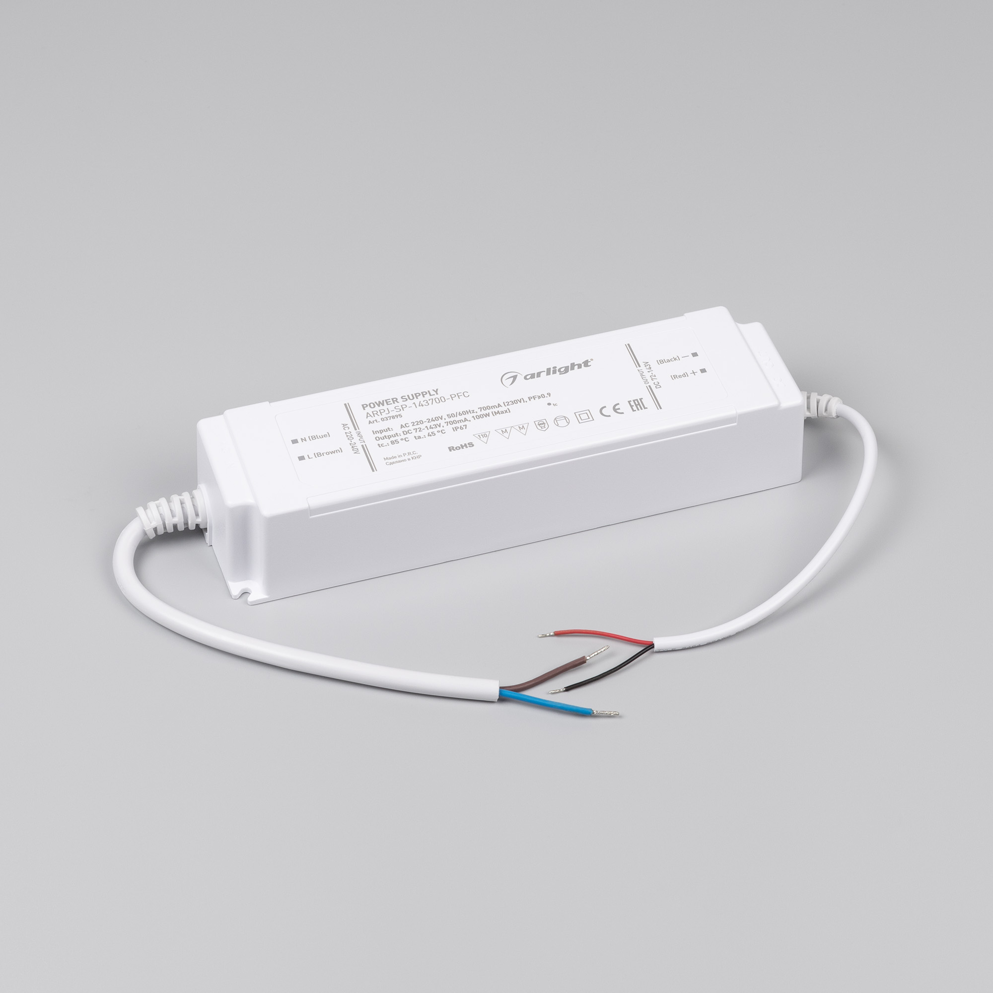 Источник напряжения с гальванической развязкой применяется для питания различных типов светодиодных изделий. Пластиковый корпус обладает небольшим весом и габаритами, а высокая степень влагозащиты IP67 позволяет использовать устройство как внутри, так и вне помещений, с соблюдением правил и требований к установке. Встроенный корректор коэффициента мощности позволяет снизить реактивную мощность источника питания, что положительным образом отражается на количестве потребляемой энергии. Высокая эффективность и расширенная гарантия 5 лет – основные преимущества линейки ARPJ-SP.