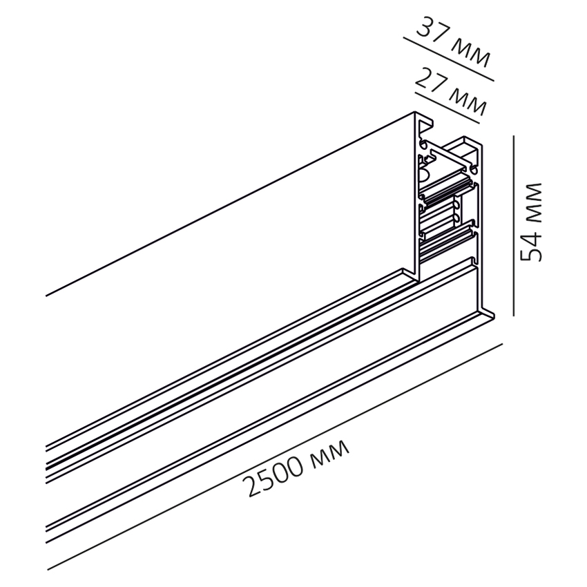 Встраиваемый шинопровод Space V предназначен для монтажа в поверхность потолка или стен, подключение 48 вольт, длина 2.5 м.