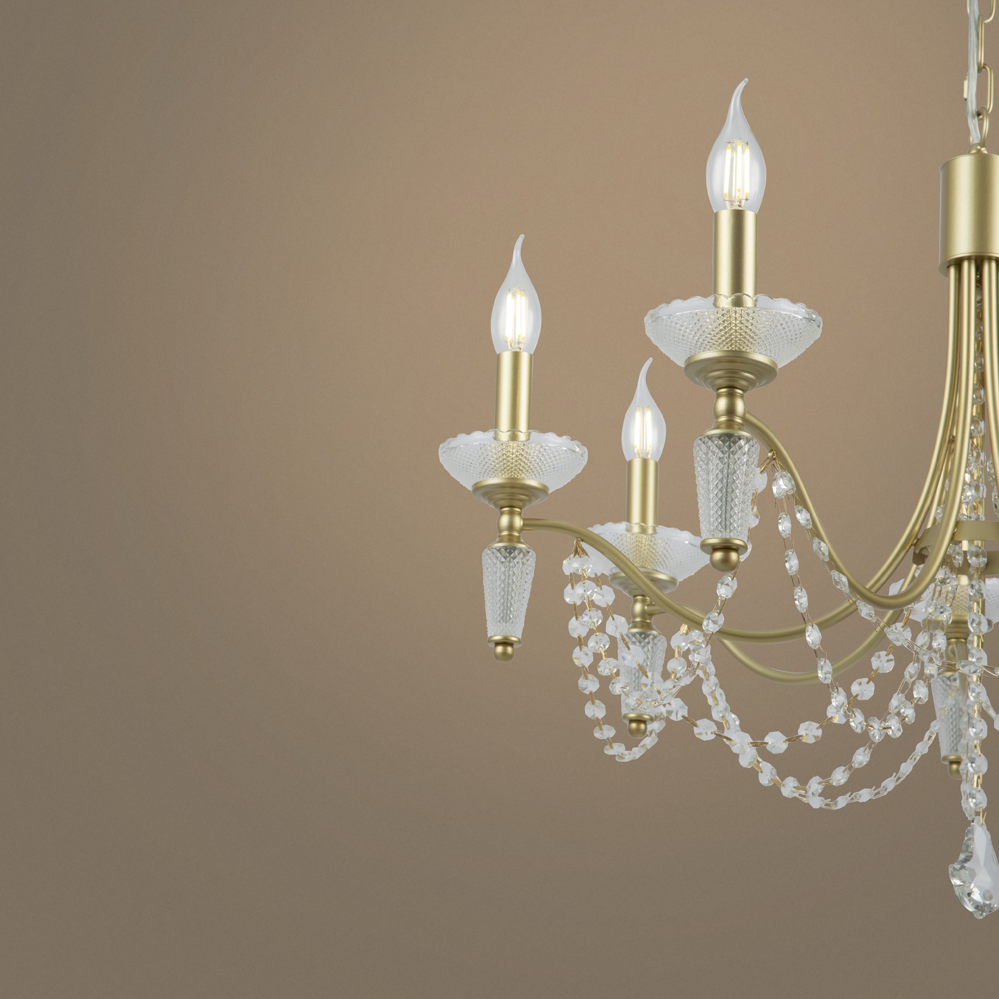 Элегантные светильники серии Zoe прекрасно впишутся в классический интерьер в теплых тонах. Главное украшение серии – декоративные элементы из рифленого стекла, напоминающие маленьких балерин в воздушных пачках, кружащихся в переливах света. Хрустальные нити и крупная каплевидная подвеска по центру усиливают игру света и создают торжественное настроение. Серия включает люстры на 12, 7 и 5 рожков и бра. Прекрасным дополнением к серии Zoe станут лампочки VOLTEGA «свеча на ветру».