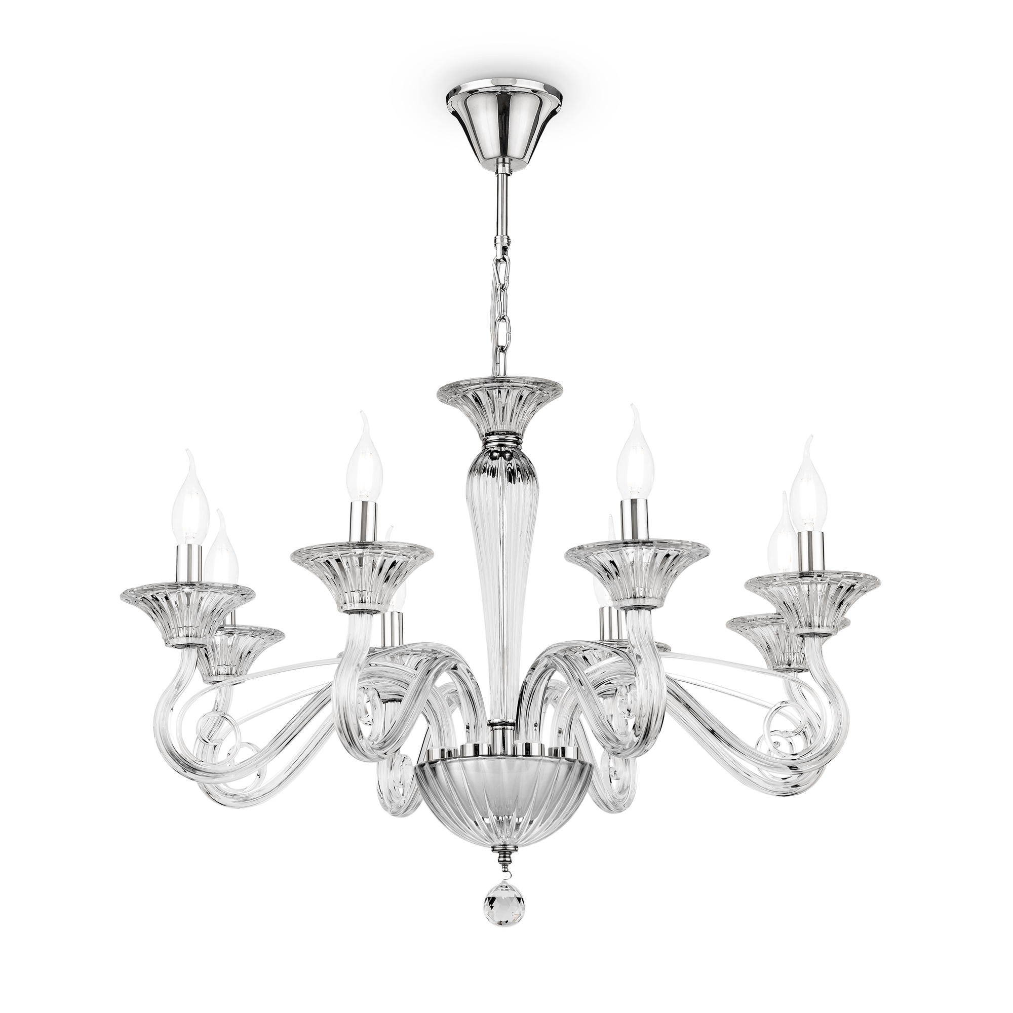 Многолетнее мастерство стеклодувов и использование современных технологий сделало возможным производство светильников серии Acqua. Благодаря тщательно отобранному сырью стеклянные детали прозрачны, а их формы пластичны. Светильники украшены кристаллами. Высоту люстр возможно отрегулировать длиной цепи.