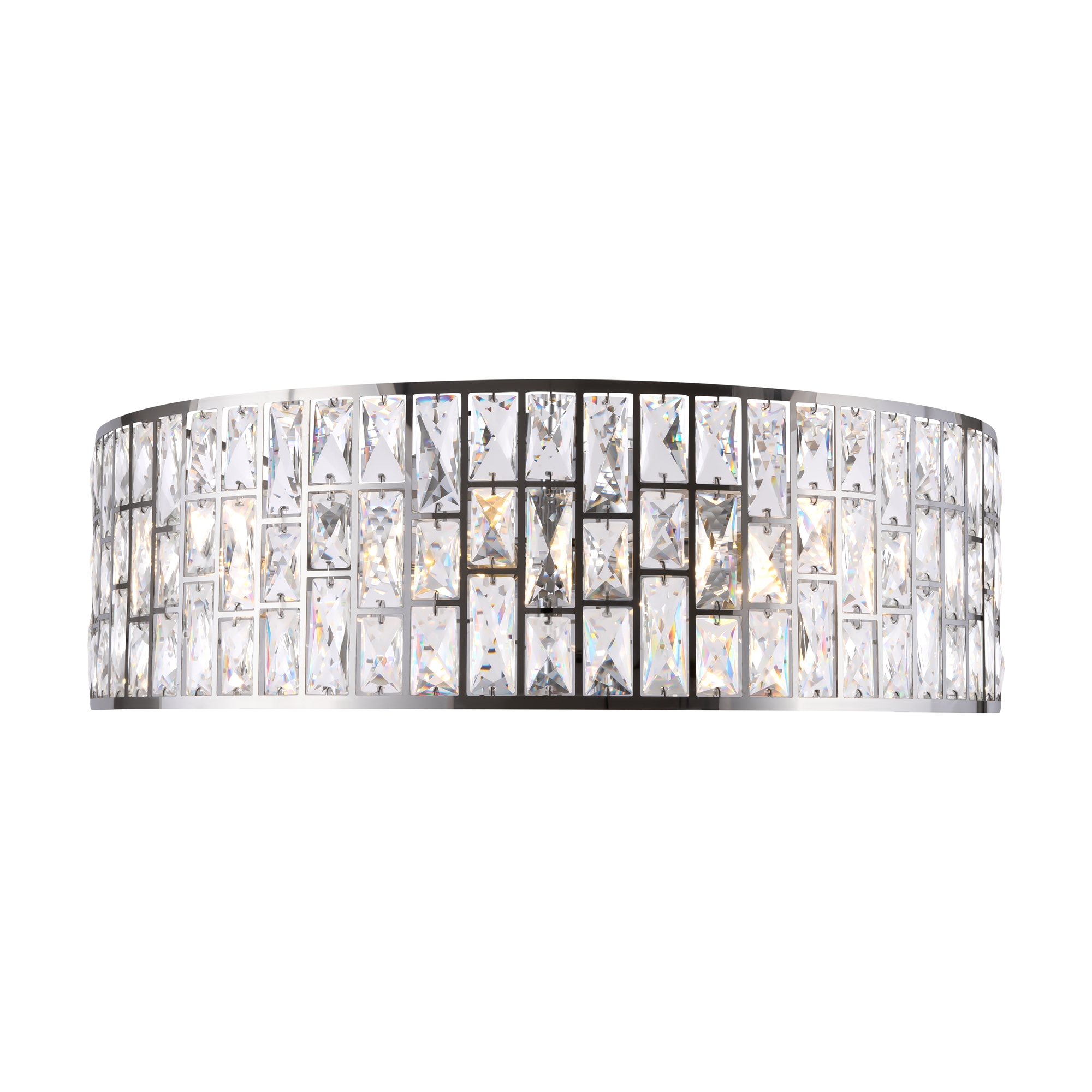Металлическая арматура, цвет – хром. Каркас абажура – металл, декор – прозрач ный хрусталь. Потолочные модели с рассеивателем из матового стекла. Высота подвесных светильников регулируется.