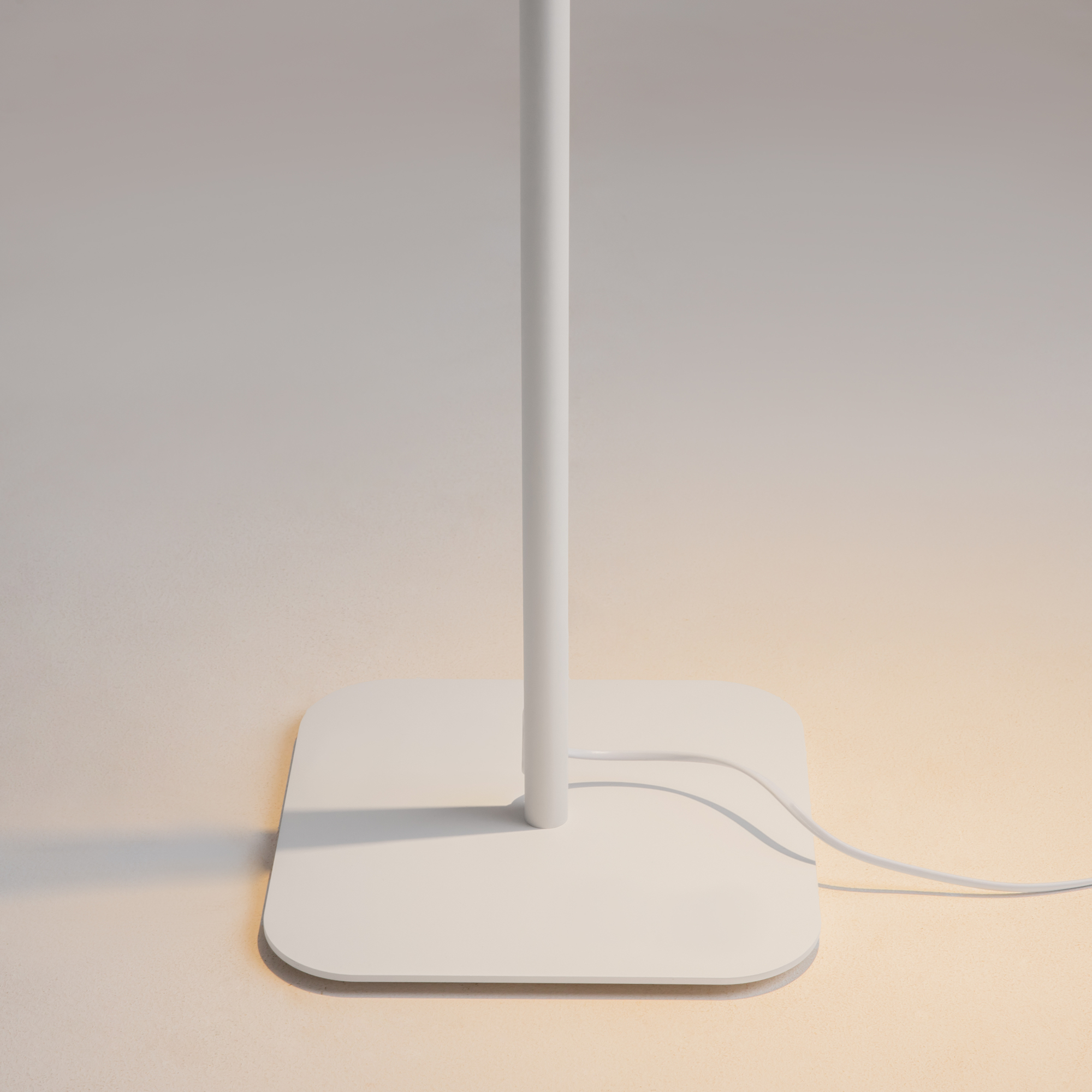 Металлическая арматура в белом и черном цвете. Материал абажура – текстиль, нанесенный на ПВХ, оттенки – белый и черный. LED-элемент для локальной под светки расширяет функционал модели.