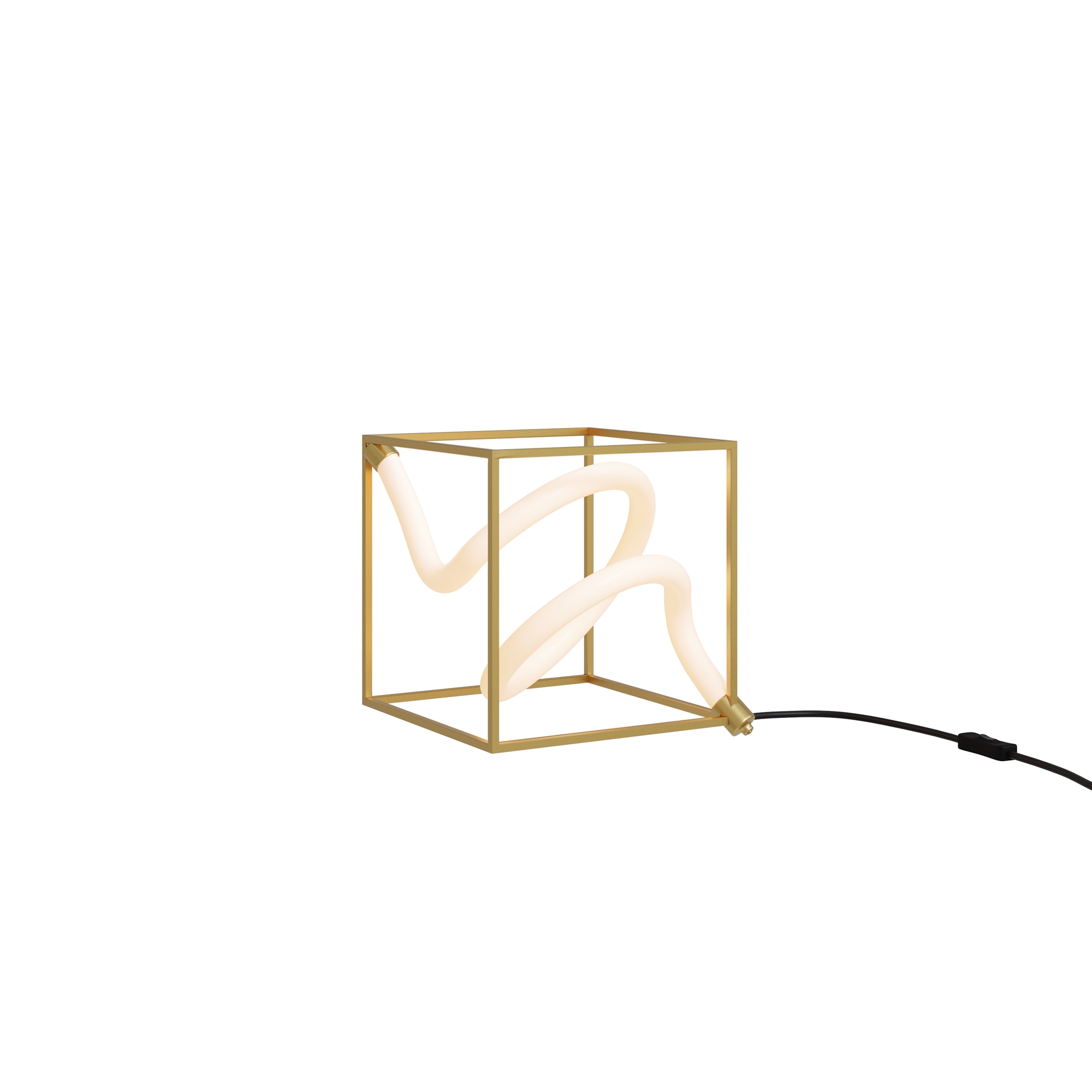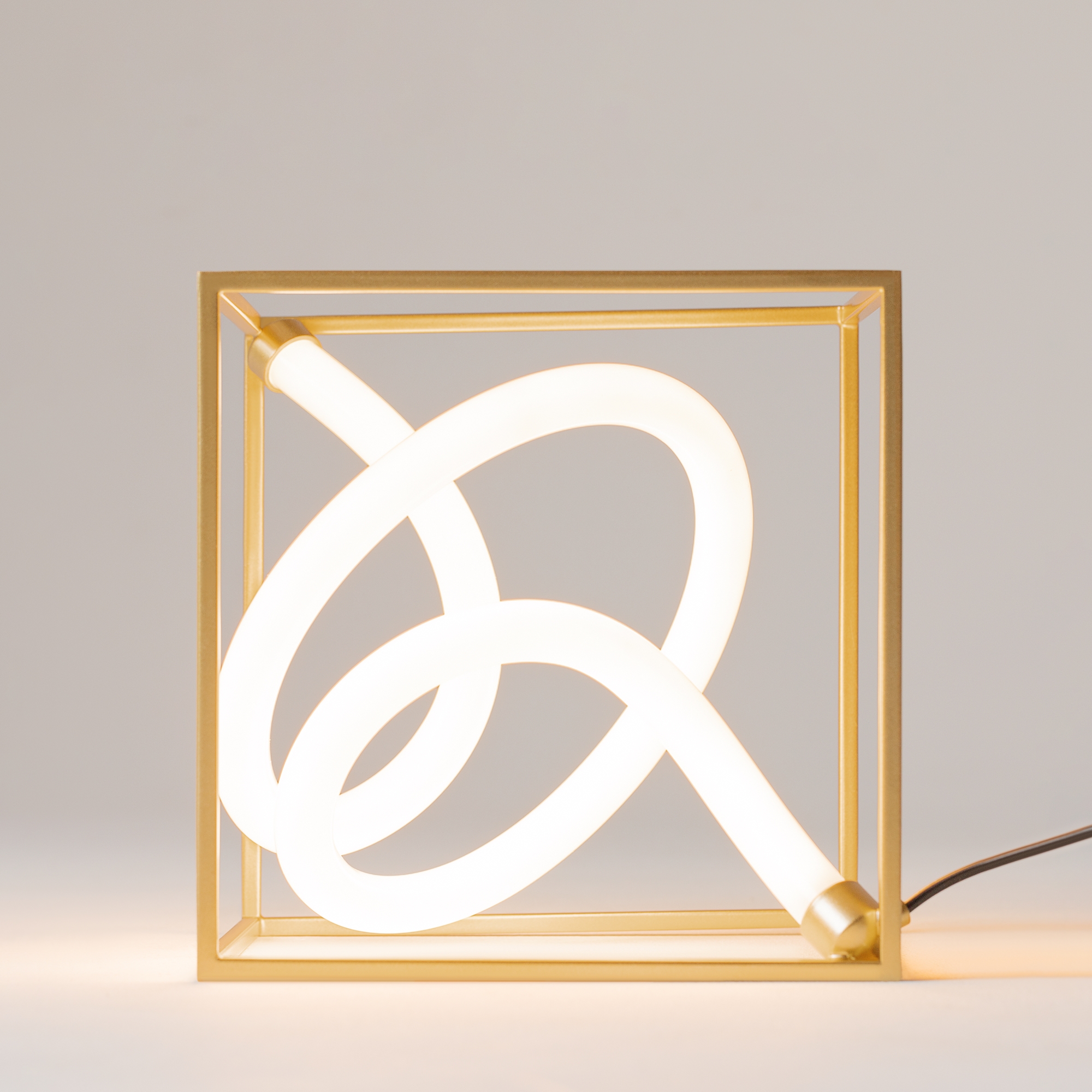 Металлическая арматура, цвет – латунь. Графичный силуэт. Источник света – гибкая неоновая трубка, расположенная внутри арматуры. Угол рассеивания — 120 градусов. Дизайн светильников подходит для интерьера в стиле лофт, а также индустриального стиля. Регулируемый провод подвесного светильника — 3 м.