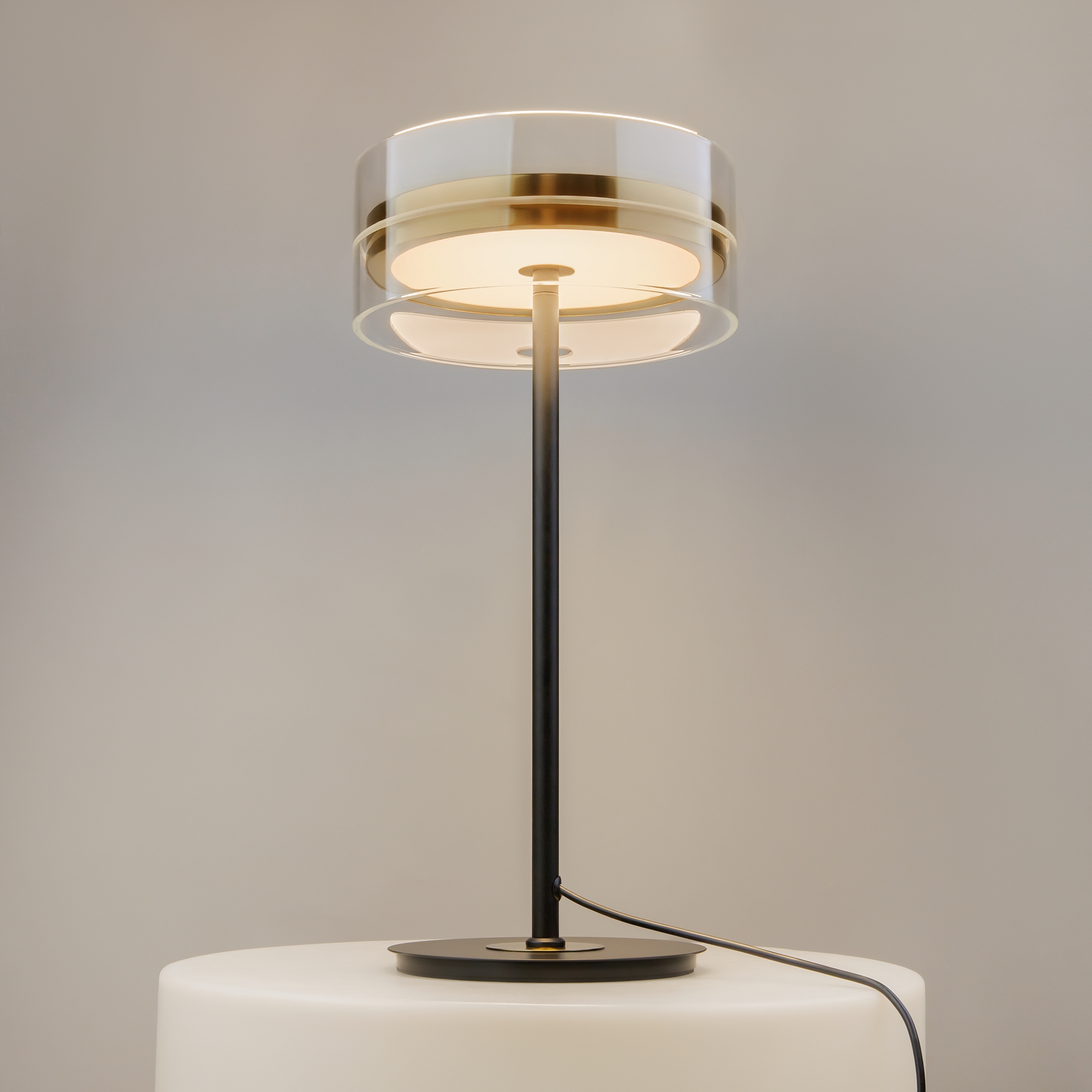 Плафоны подчеркнуто лаконичной формы в виде правильного цилиндра из стекла, дополненные металлической комбинированной черно-латунной арматурой. Источник света: LED. Цветовая температура — 3000К, угол рассеивания — 120 градусов. Провод длиной 3 метра можно регулировать. Светильники серии оснащены функцией диммирования: бесступенчатое управление у настольного светильника, а также 3 ступени регулировки – у торшера, подвесных и потолочного светильников. Светильники серии Dress code отличаются строгим и сдержанным дизайнерским оформлением.