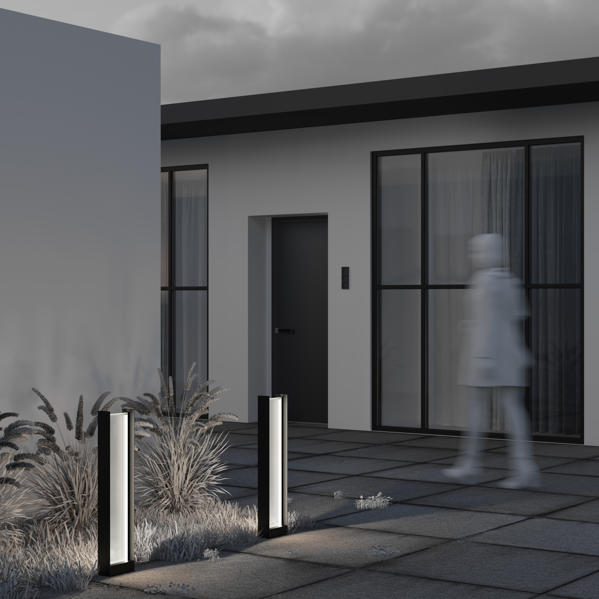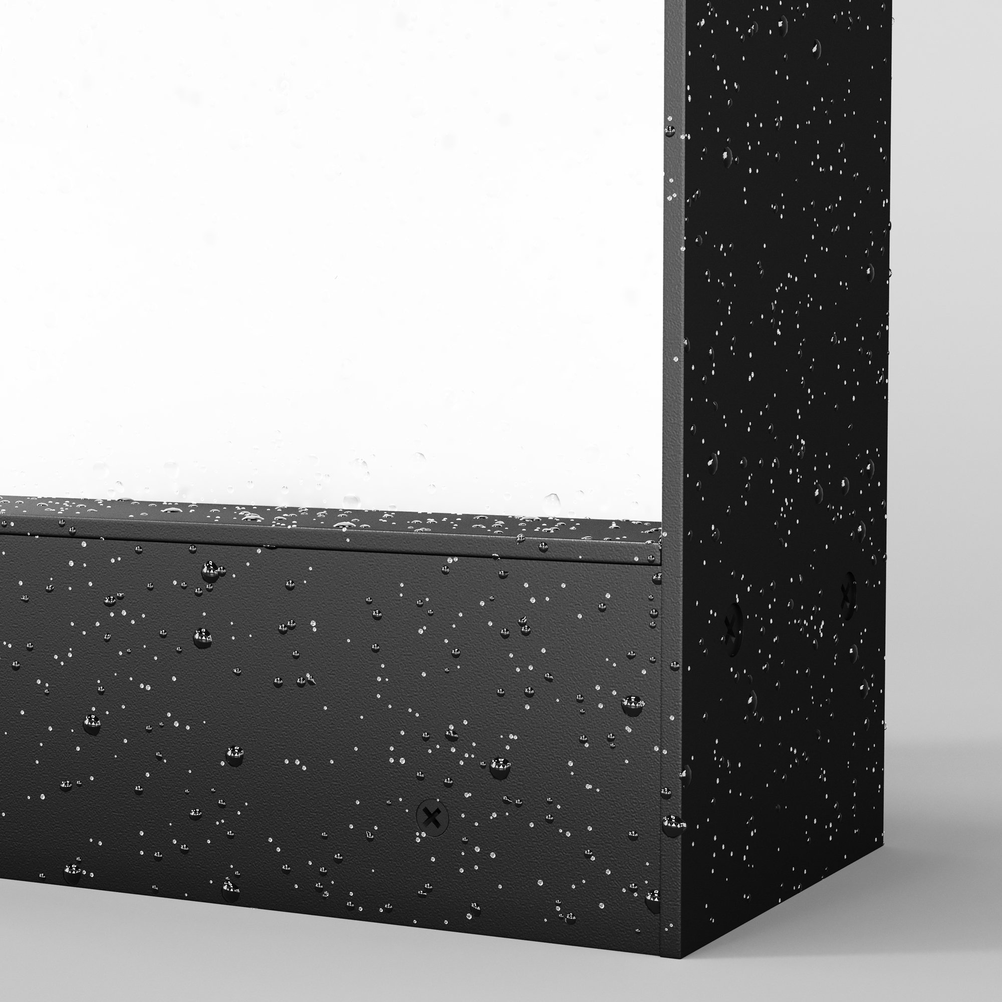 Материал корпуса – алюминий, цвет – графит. Рассеиватель из прочного матового стекла. LED-источник света, цветовая температура – 3000К. Степень защиты – IP65. Подходят для основного освещения.
