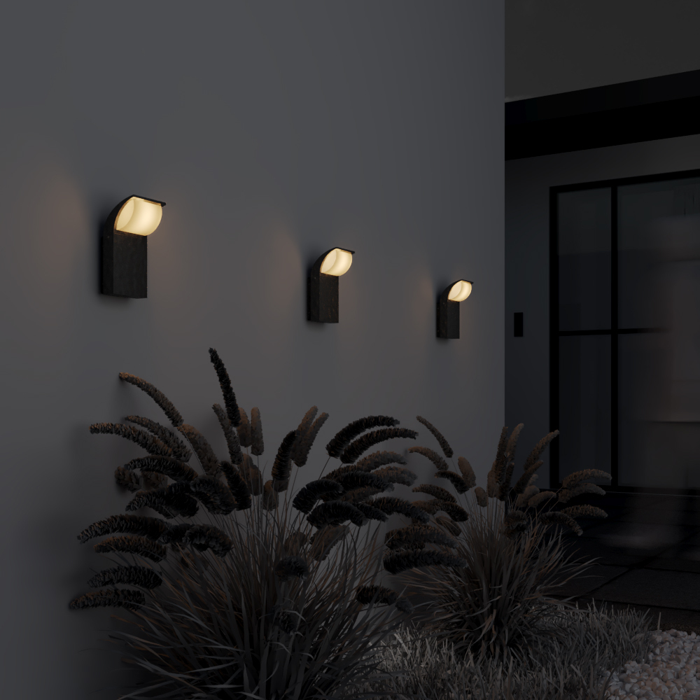 Материал корпуса – алюминий, цвет – графит. Белый матовый рассеиватель. LED-источник света. Цветовая температура 3000К. Наличие встроенного датчика движения у настенной модели. Степень защииты IP65 и IP44 настенной модели с датчиком движения.
