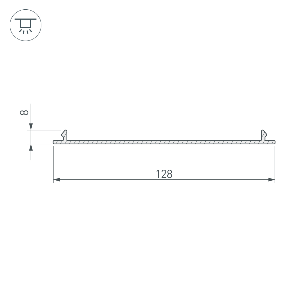 Габаритные размеры профиля составляют 2000 мм в длину, 128 мм в ширину и 8 мм в высоту.