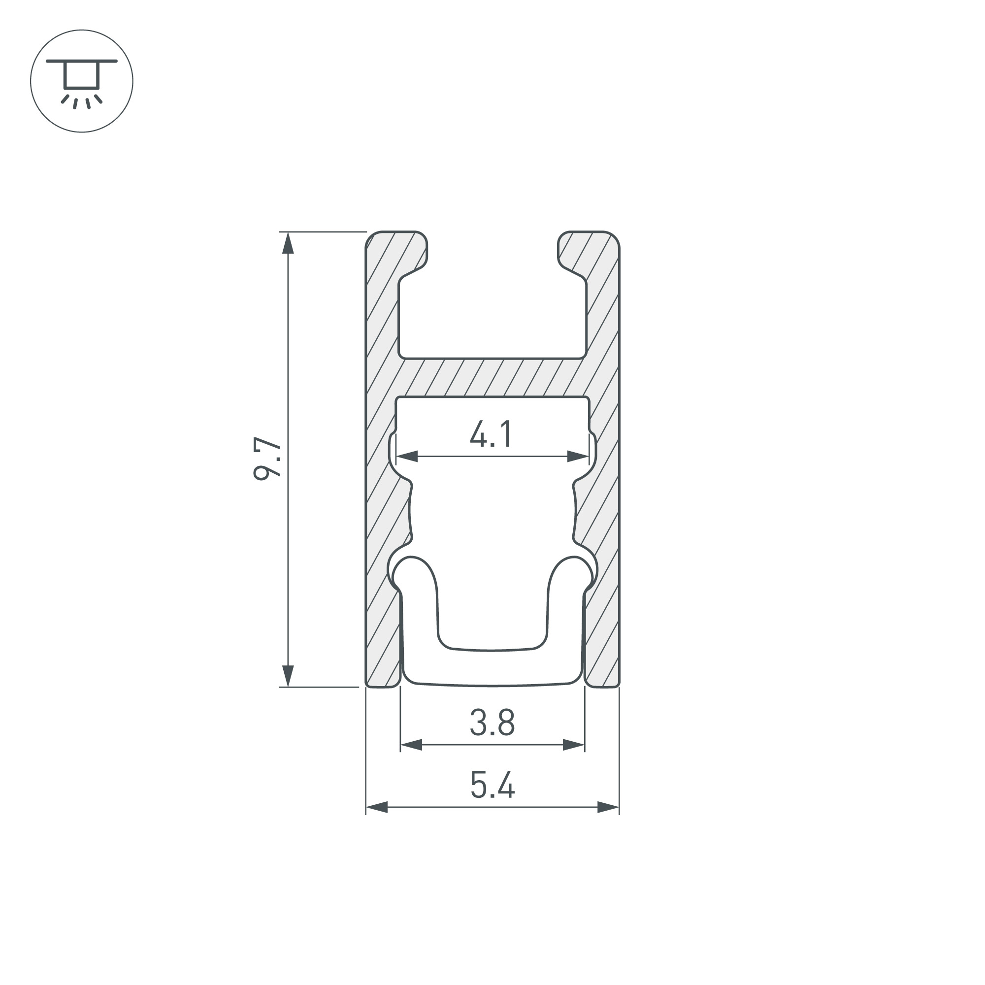 Накладной микро-профиль из анодированного алюминия для подсветки мебели, пазов, ниш и других элементов интерьера. Габаритные размеры профиля составляют 2000 мм в длину, 5,4 мм в ширину и 9,7 мм в высоту. Площадка для установки светодиодных лент позволяет использовать ленту шириной до 3,5 мм и мощностью до 7,8 Вт/м. Это обеспечивает гибкость в выборе светодиодных лент и создает потрясающие световые решения.
