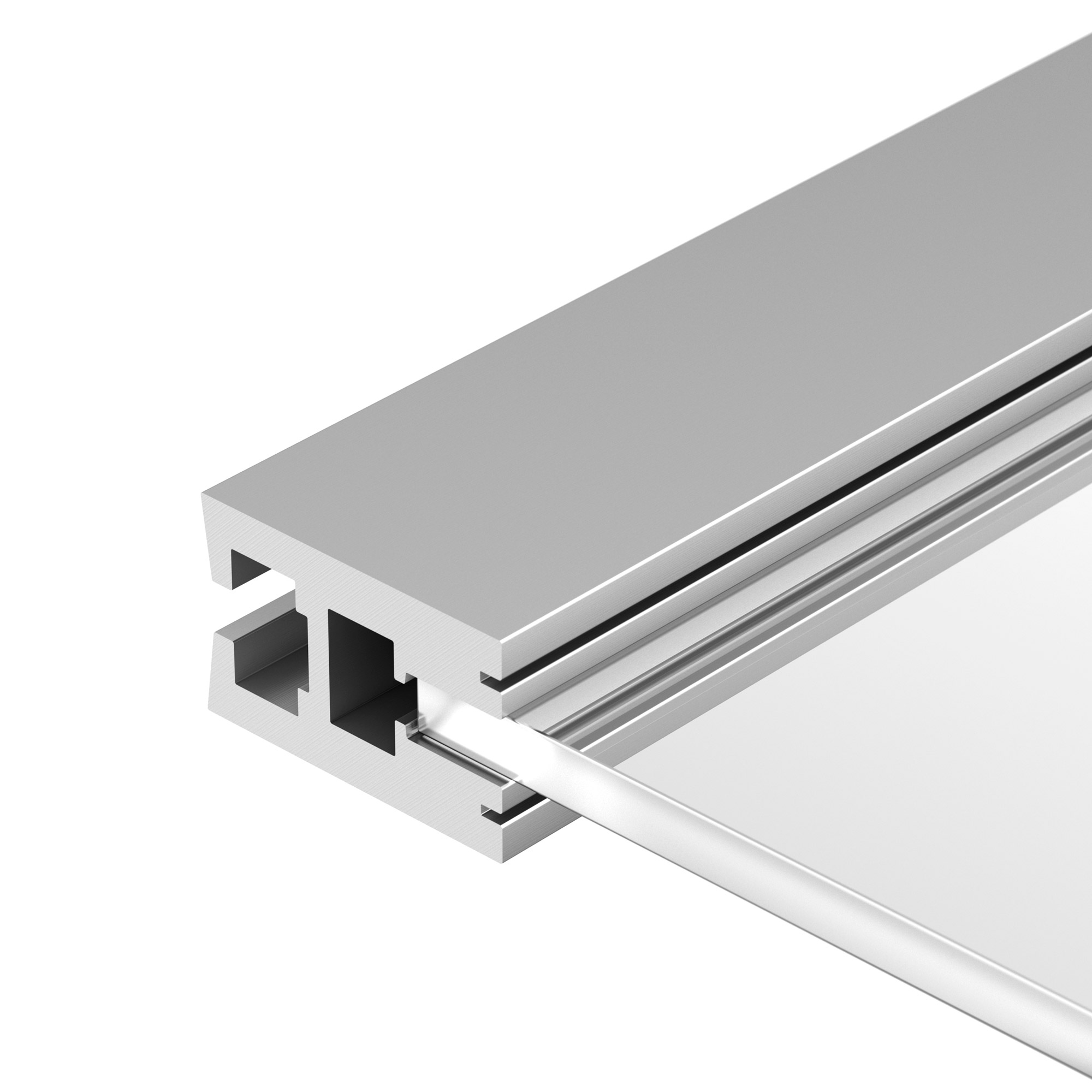 Накладной профиль из анодированного алюминия для монтажа и подсветки стекла (засветка до 15 см) или поликарбоната (засветка до 60 см) толщиной 6 мм. Габаритные размеры профиля составляют 2000 мм в длину, 21,5 мм в ширину и 34,4 мм в высоту. Площадка для установки светодиодных лент позволяют использовать ленту шириной до 11 мм и мощностью до 30,7 Вт/м. Это обеспечивает гибкость в выборе светодиодных лент и создает потрясающие световые решения.