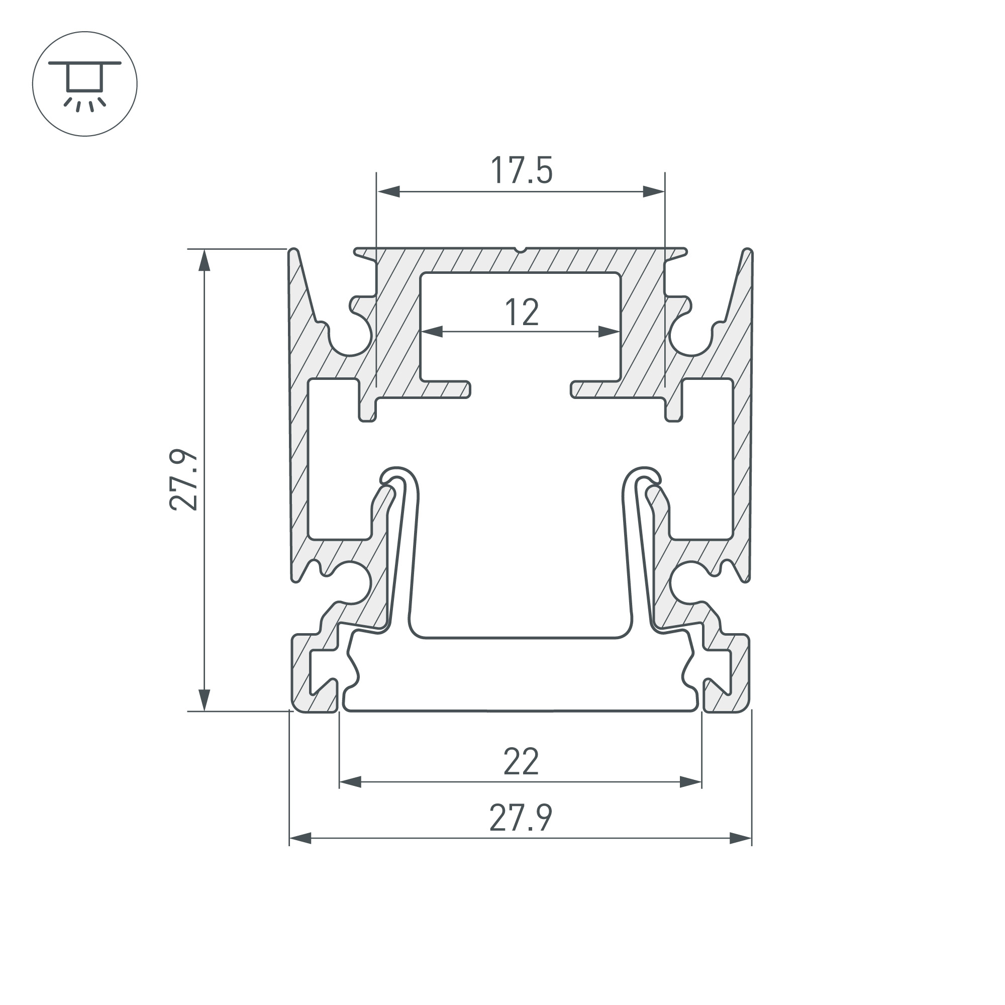 Габаритные размеры профиля составляют 2000 мм в длину, 28 мм в ширину и 28 мм в высоту. Площадка для установки светодиодных лент позволяет использовать ленту шириной до 17,5 мм и мощностью до 25,8 Вт/м. Это обеспечивает гибкость в выборе светодиодных лент и создает потрясающие световые решения.