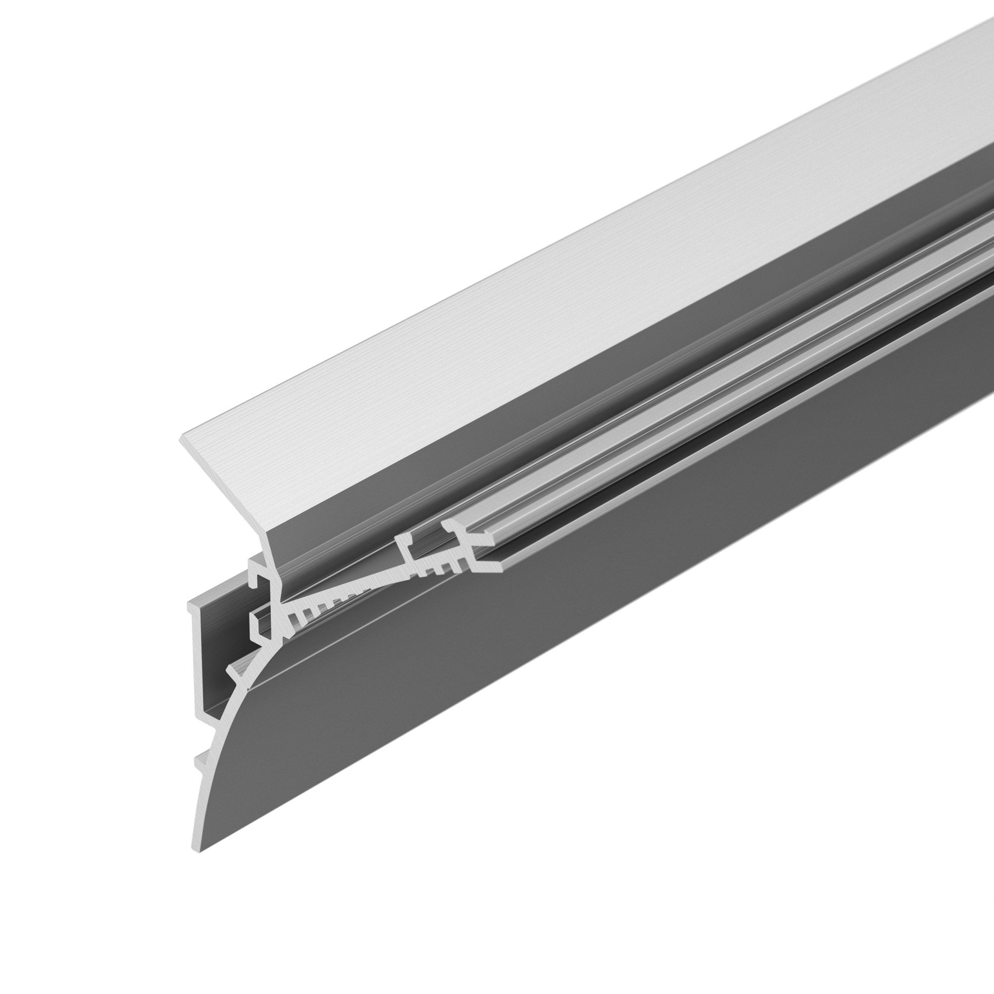 Двухкомпонентный накладной алюминиевый профиль (возможен монтаж под строительную отделку) для подсветки стен и потолков. Габаритные размеры профиля составляют 2000 мм в длину, 38,1 мм в ширину и 19 мм в высоту. Площадка для установки светодиодных лент позволяет использовать ленту шириной до 11,2 мм и мощностью до 13,9 Вт/м. Это обеспечивает гибкость в выборе светодиодных лент и создает потрясающие световые решения.