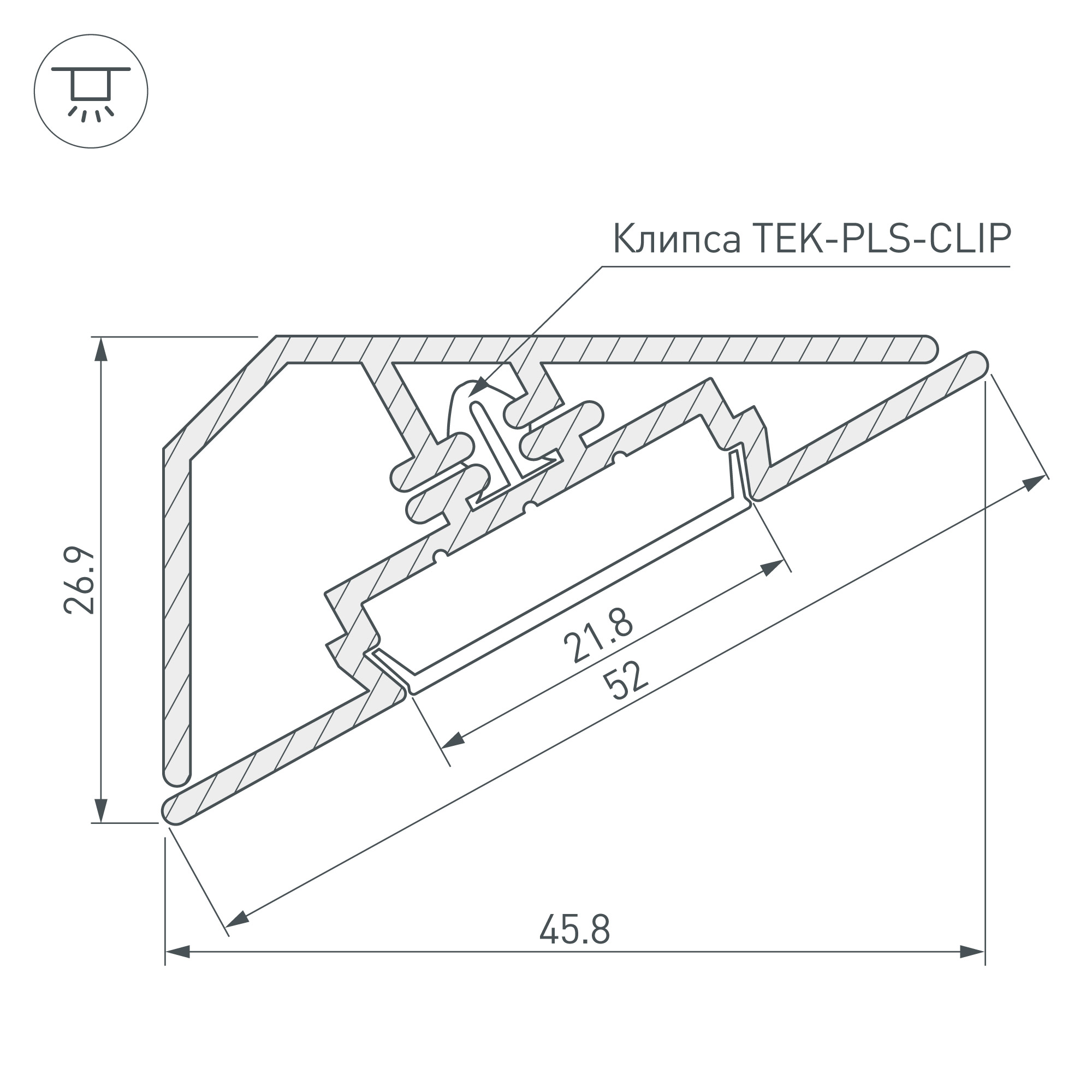 Угловой профиль из анодированного алюминия для подсветки мебели, ниш и других элементов интерьера. Габаритные размеры профиля составляют 2000 мм в длину, 45,8 мм в ширину и 26,9 мм в высоту. Площадка для установки светодиодных лент позволяет использовать ленту шириной до 21,8 мм и мощностью до 32,8 Вт/м. Это обеспечивает гибкость в выборе светодиодных лент и создает потрясающие световые решения.