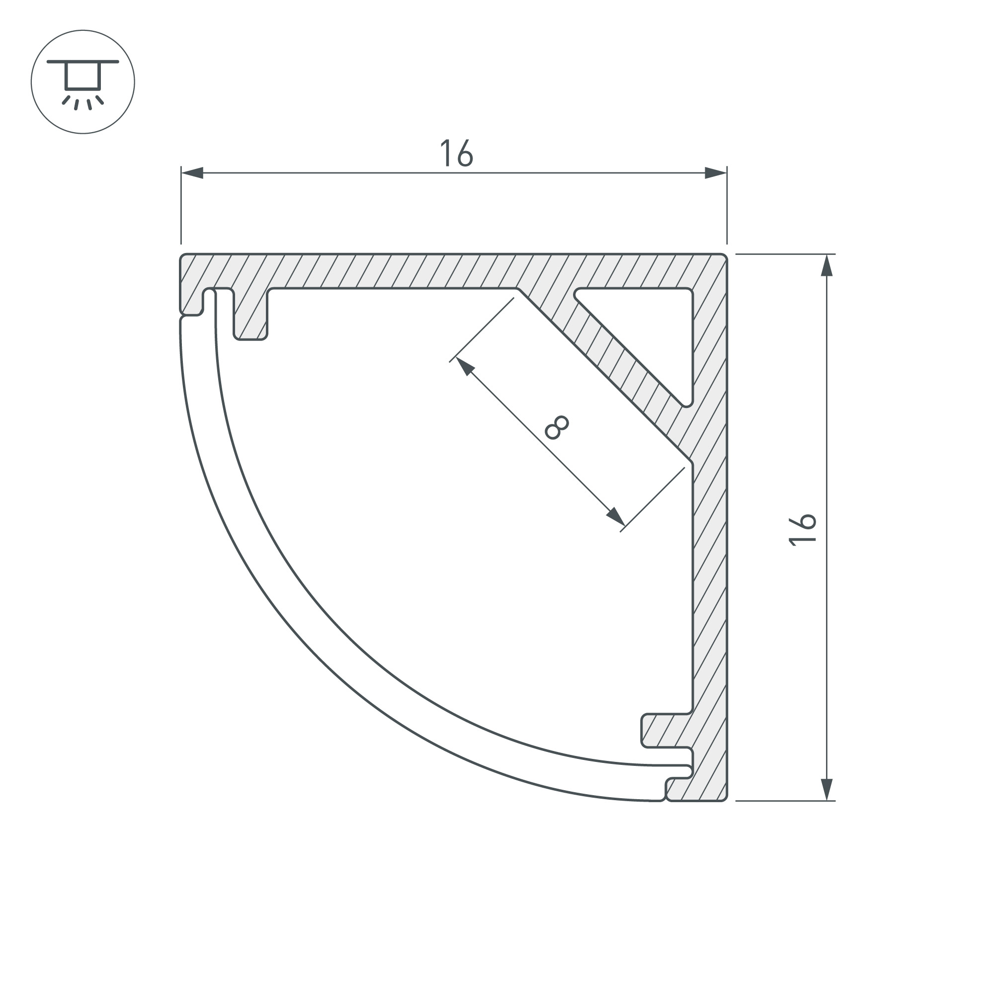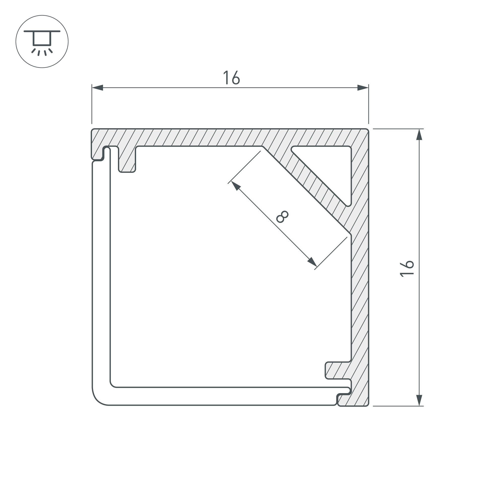 Накладной угловой профиль черного цвета из алюминия для подсветки мебели, пазов, ниш и других элементов интерьера. Габаритные размеры профиля составляют 2000 мм в длину, 16 мм в ширину и 16 мм в высоту. Площадка для установки светодиодных лент позволяет использовать ленту шириной до 8 мм и мощностью до 14,5 Вт/м. Это обеспечивает гибкость в выборе светодиодных лент и создает потрясающие световые решения.