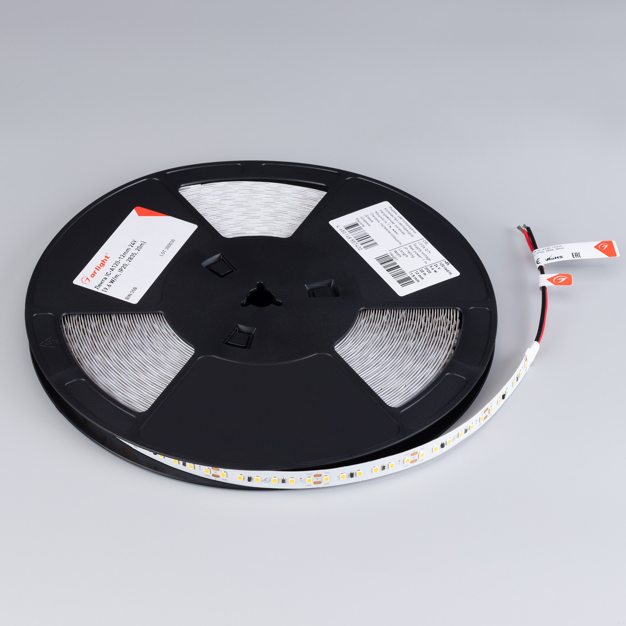 Стабилизированная светодиодная лента IC серии A120 шириной 12 мм, мощностью 9.6 Вт/м, с подключением до 20 м. Стабилизаторы тока обеспечивают равномерное свечение дневного цвета (5000K) по всей длине при подключении с одной стороны. Напряжение питания 24 В. Светодиоды SMD 2835, 120 шт/м. Индекс цветопередачи CRI>85. Минимальный отрезок 50 мм (6 светодиодов). Лента совместима с любыми диммерами ШИМ. Применяется для декоративной подсветки потолочных ниш, создания длинных непрерывных световых линий, контуров рекламных объектов.