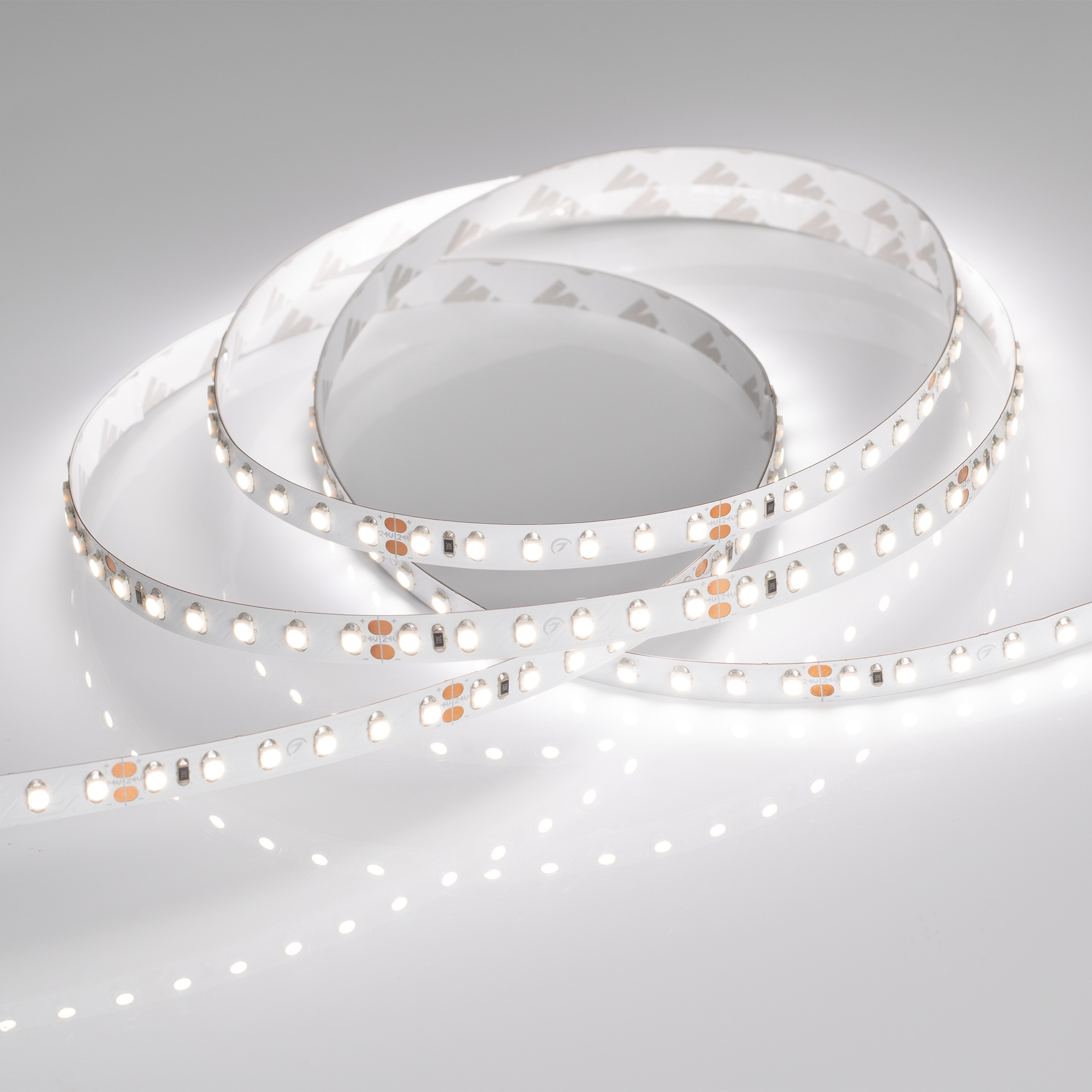 Светодиодная лента серии LUX шириной 8 мм. Питание 24 В и мощность 9.6 Вт/м. Светодиоды 2x SMD 3528 дневного белого цвета свечения (4800 – 5200 К) с плотностью расстановки 120 шт/м. Высокий индекс цветопередачи CRI>95…98 и степень пылевлагозащиты IP20.