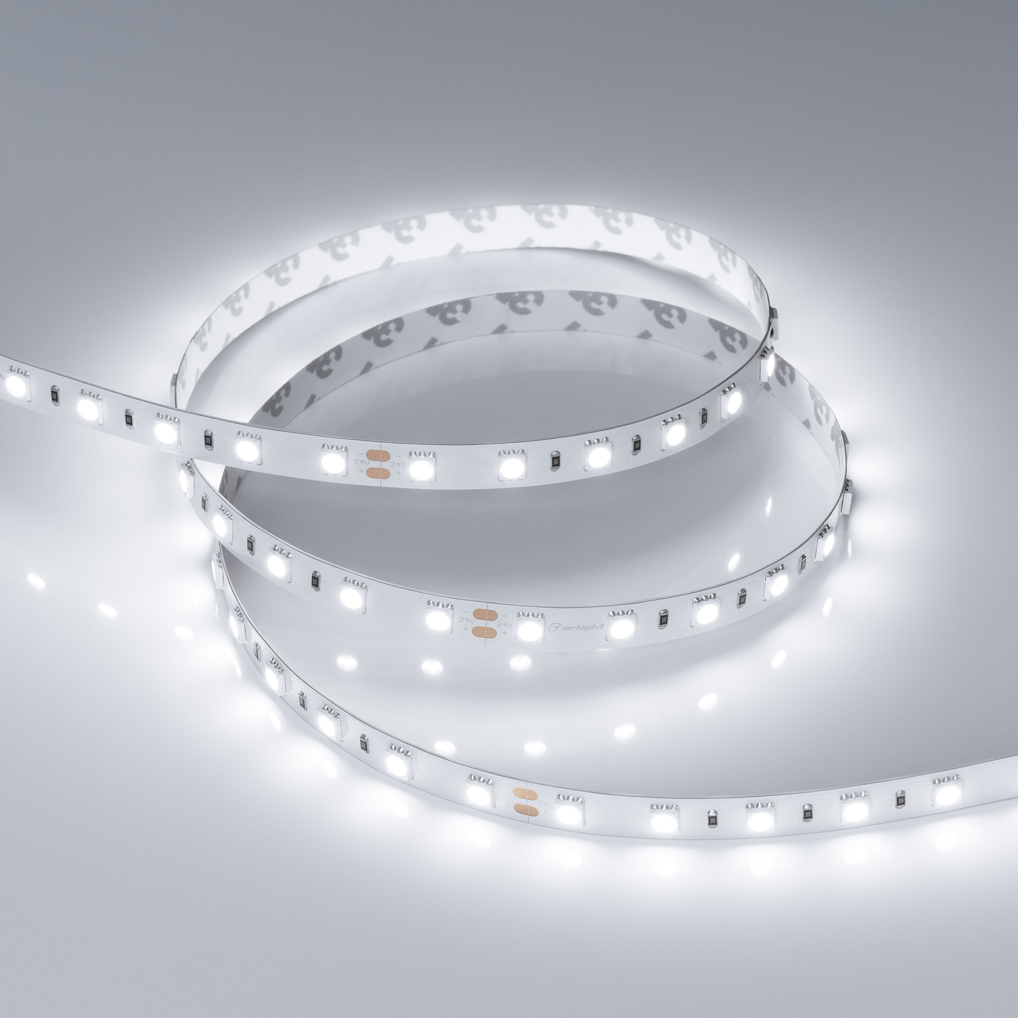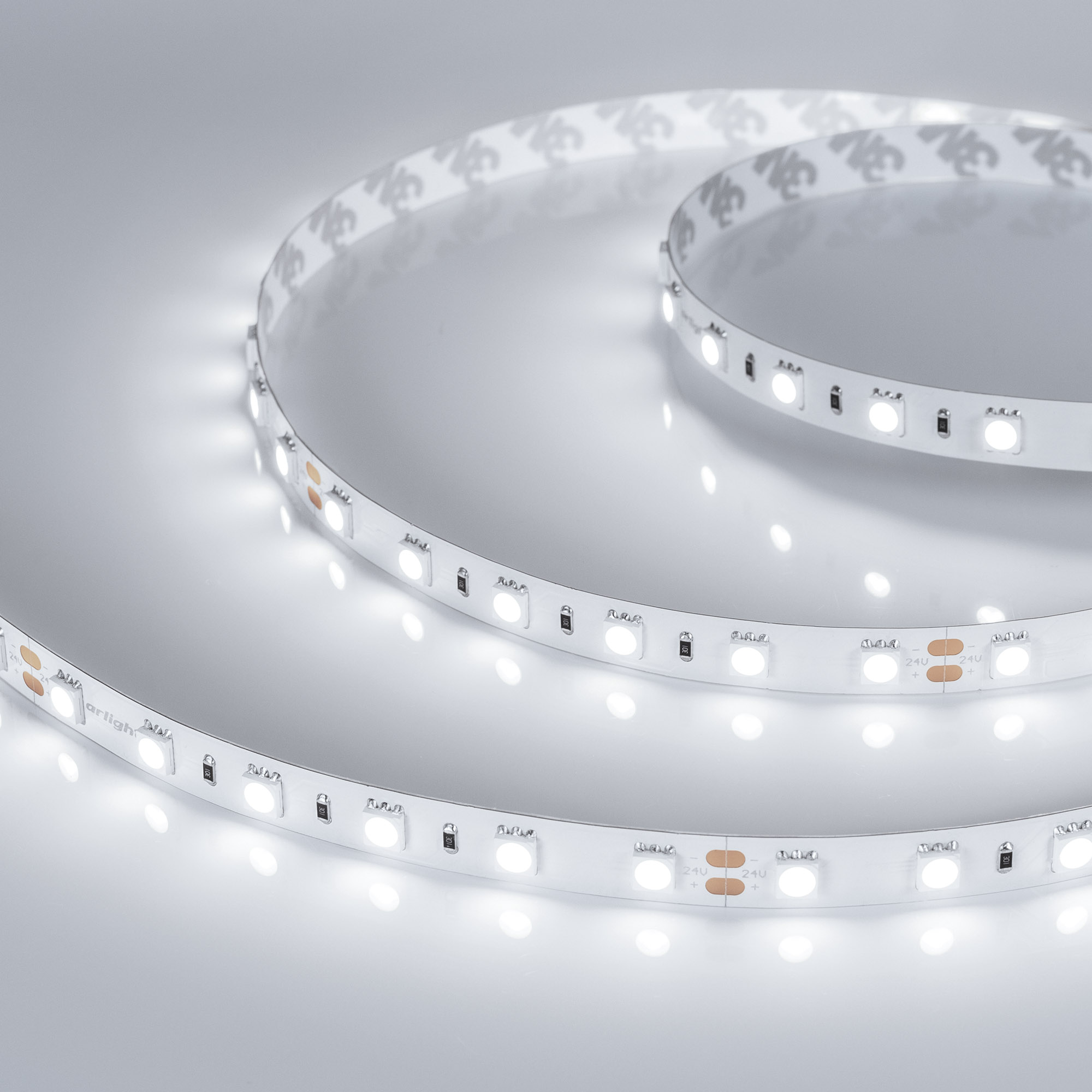 Светодиодная лента RT серии B60 шириной 10 мм, мощностью 14.4 Вт/м. Светодиоды SMD 5060, 60 шт/м, белого цвета свечения (6000K). Индекс цветопередачи CRI>85. Напряжение питания 24 В. Минимальный отрезок 100 мм (6 светодиодов). Предназначена для декоративной подсветки интерьера, потолочных ниш, рабочих зон кухни, мебели, подсветки рекламных конструкций и витрин.