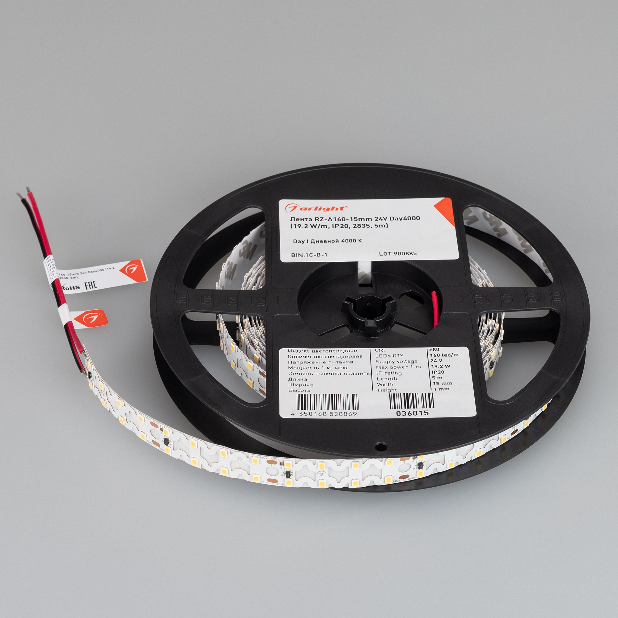 Светодиодная лента RZ серии A160 шириной 15 мм, мощностью 19.2 Вт/м, со специальной формой платы в виде волны позволяет изгибать ленту на плоскости. Максимальный угол изгиба на плоскости 10°. Минимальный диаметр изгиба на плоскости 320 мм. Вертикальный радиус изгиба 60 мм. Напряжение питания 24 В. Светодиоды SMD 2835 (160 шт/м) дневного цвета свечения (4000K). Индекс цветопередачи CRI>85. Минимальный отрезок 50 мм (8 светодиодов). Подходит для установки в криволинейные пазы. Подсветка букв, ниш, витрин, вывесок, криволинейных форм.