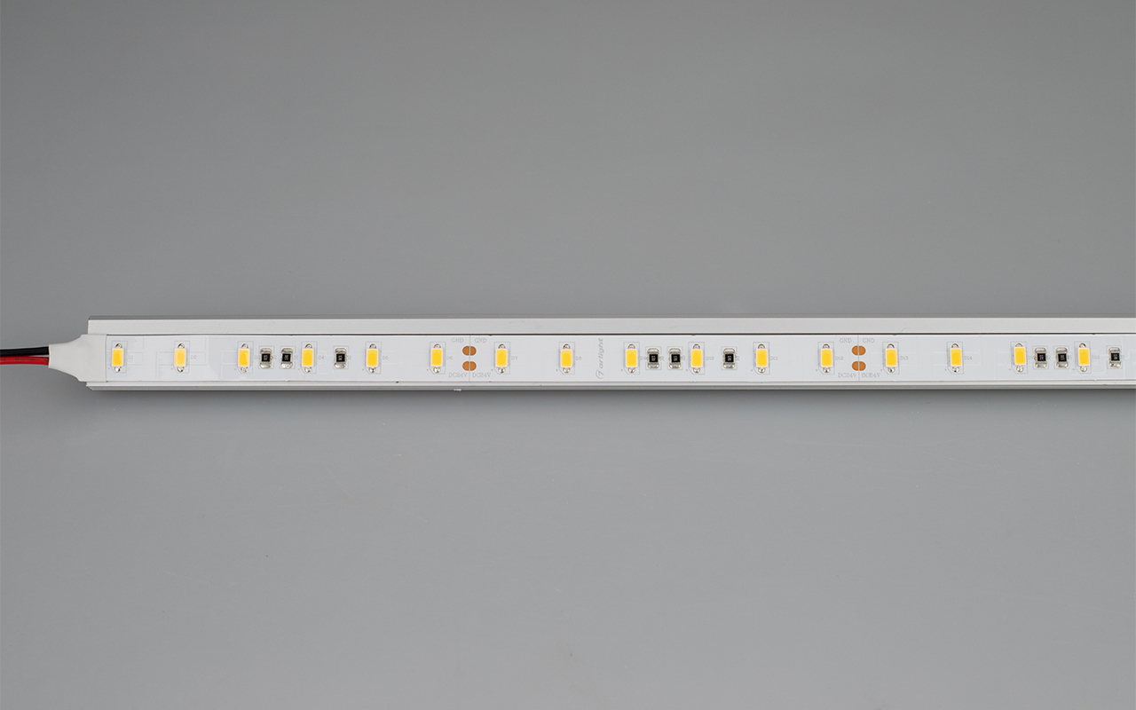 Сверхмощная лента ULTRA шириной 12 мм с большим световым потоком и индексом цветопередачи CRI>85. Светодиоды SMD 5630 (60 шт/м) с цветовой температурой 3800–4200 К. Мощность 30 Вт/м, напряжение питания 24 В. Минимальный отрезок 100 мм (6 светодиодов). Только для создания светильников из алюминиевого профиля.