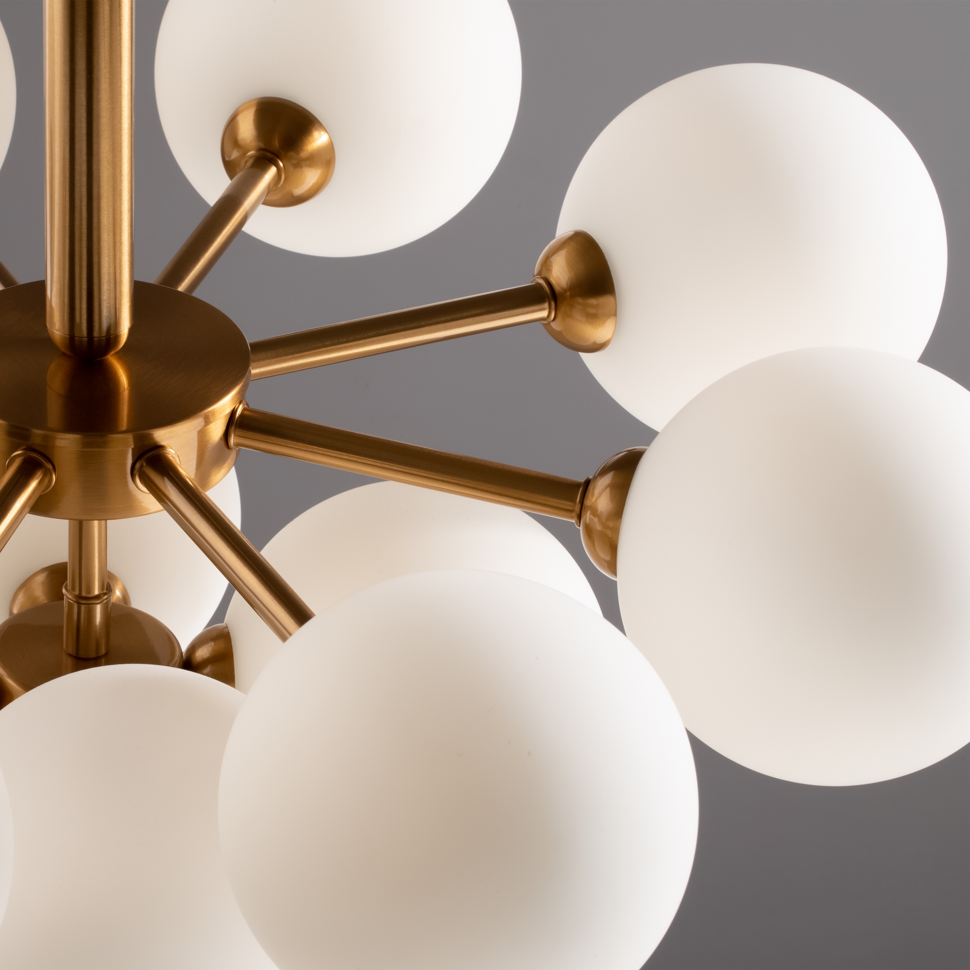 Арматура – металл, цвет – латунь. Стеклянные плафоны-сферы в двух оттенках белый матовый и дымчатый в настенно потолочной версии. Округлые и плавные линии – беспроигрышное сочетание для современных интерьеров. Настенные бра можно использовать как для общего на потолке так и для зонального настенного освещения Источник света – лампа с цоколем G9.